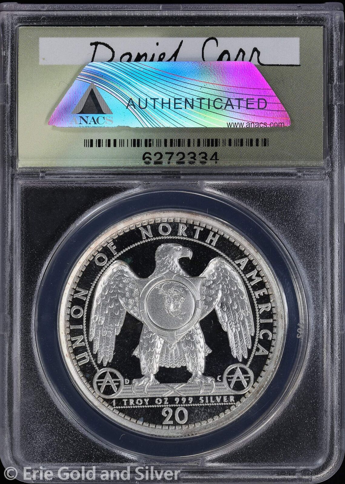 2010-D Dan Carr Silver 20 Ameros Indian/Puma Concept Token ANACS MS 68 DCAM
