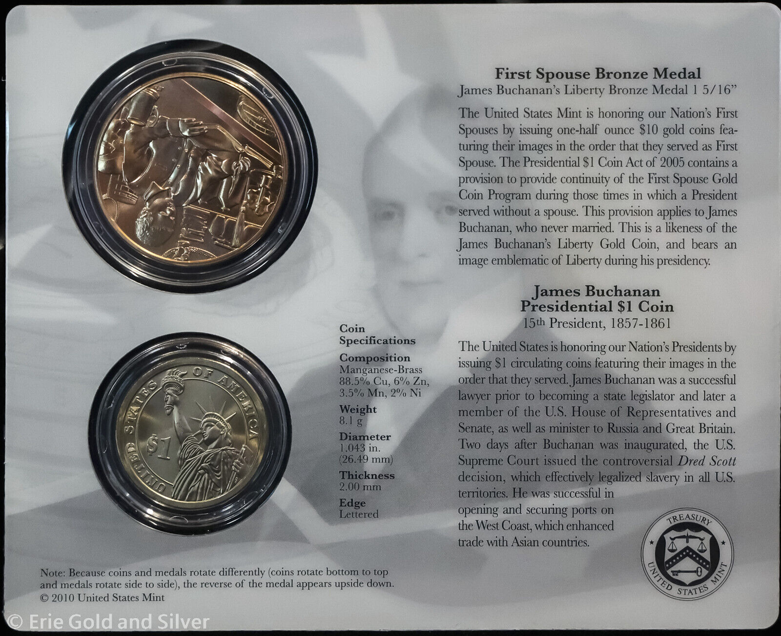 For sale is a 2010 James Buchanan Presidential Dollar & First Spouse Medal Set. View pictures for details and condition. The item pictured is the exact item you will receive. Feel free to contact us with any questions.