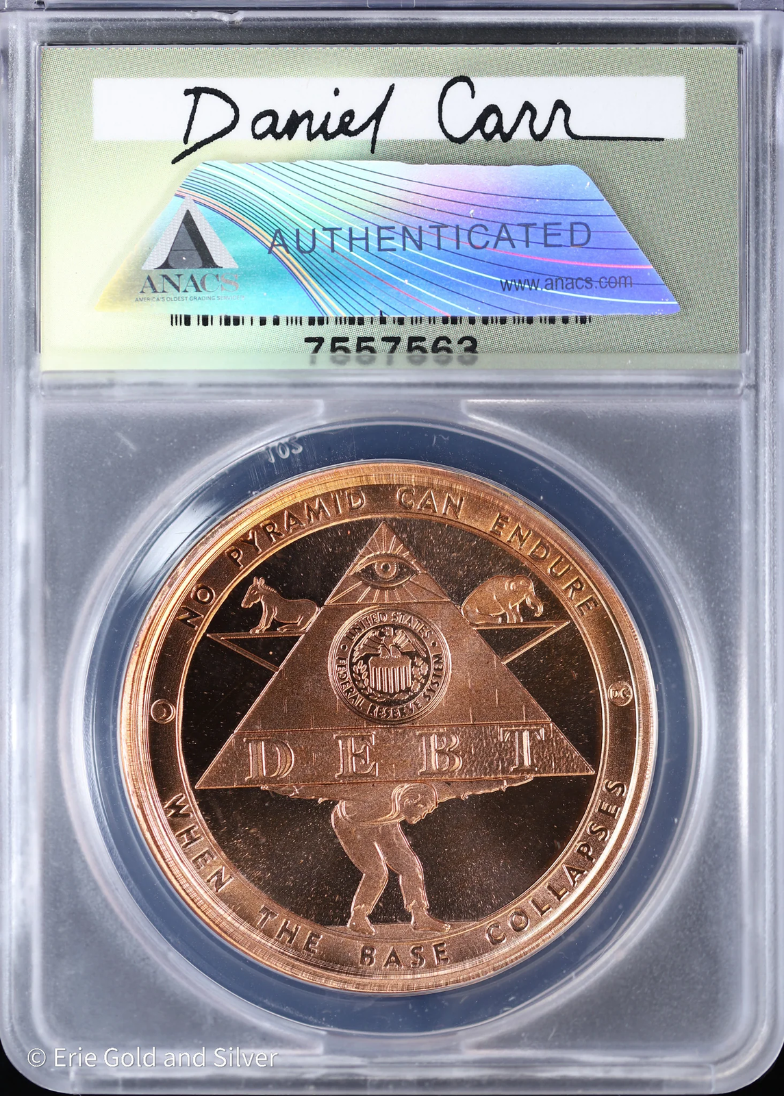 2010 Medal Dan Carr Moonlight Mint Political Debt Pyramid Copper ANACS MS 68 DCA