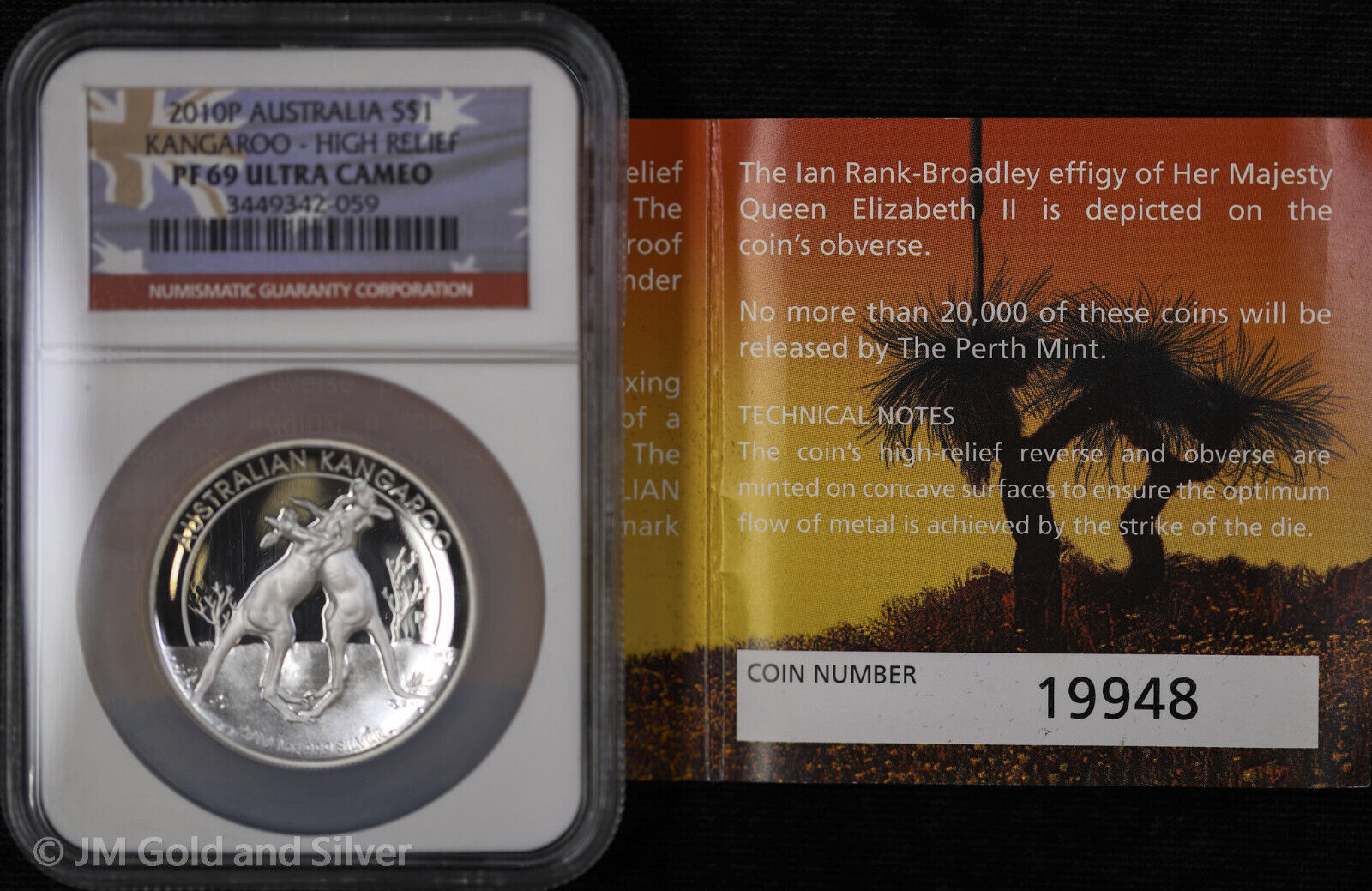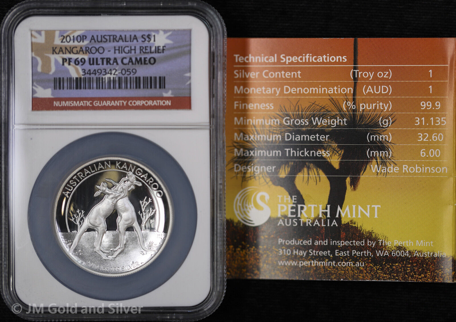 2010-P Australia 1 oz Silver Proof High Relief Kangaroo NGC PR 69 Ultra Cameo | w/ COA