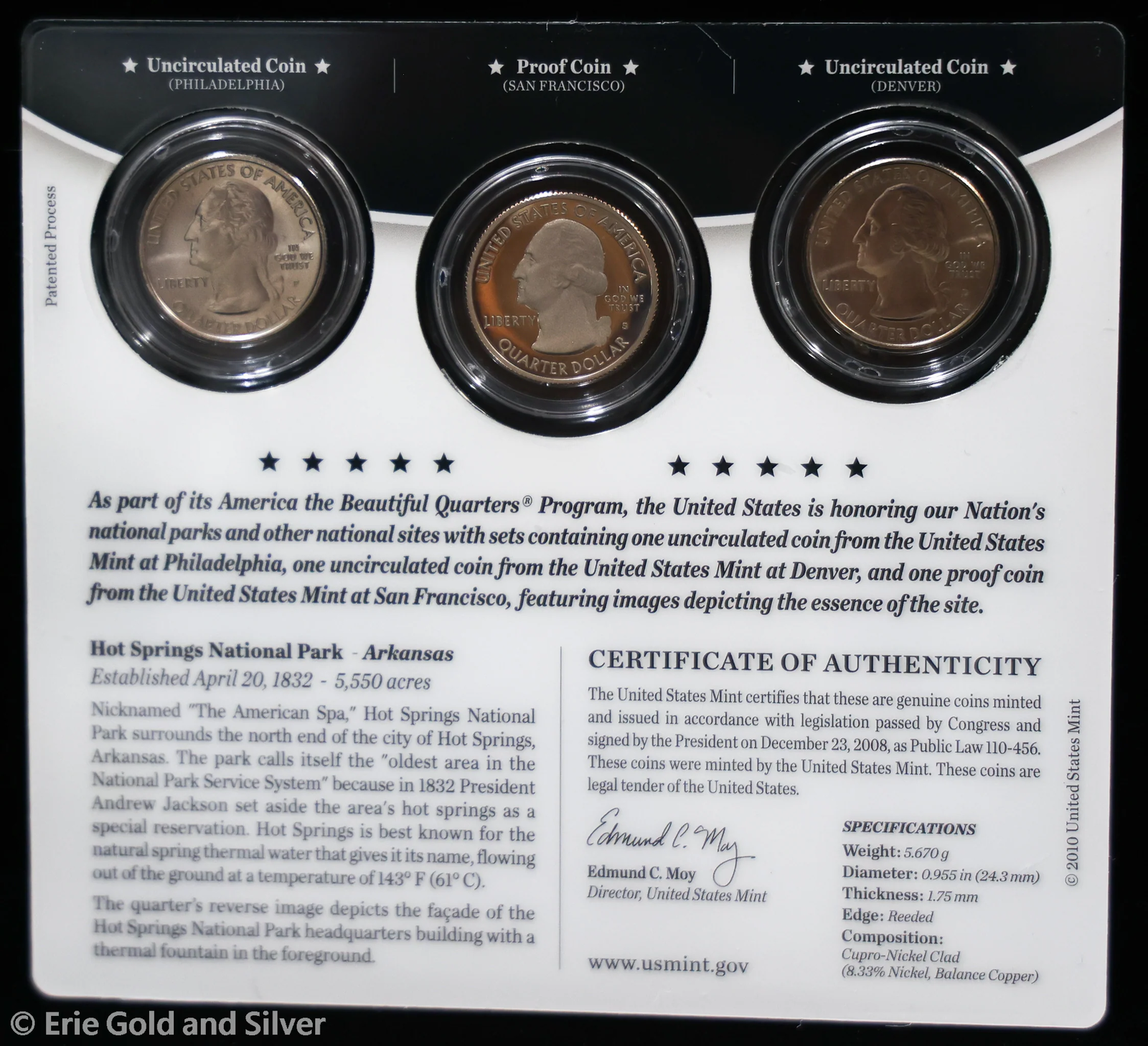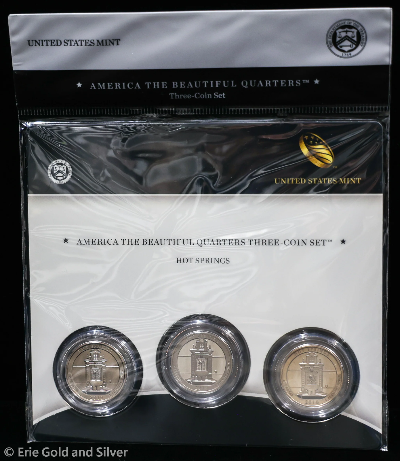 2010 P D S 25c ATB Hot Springs Nat'l Park Quarters 3 Coin Set | BU Proof