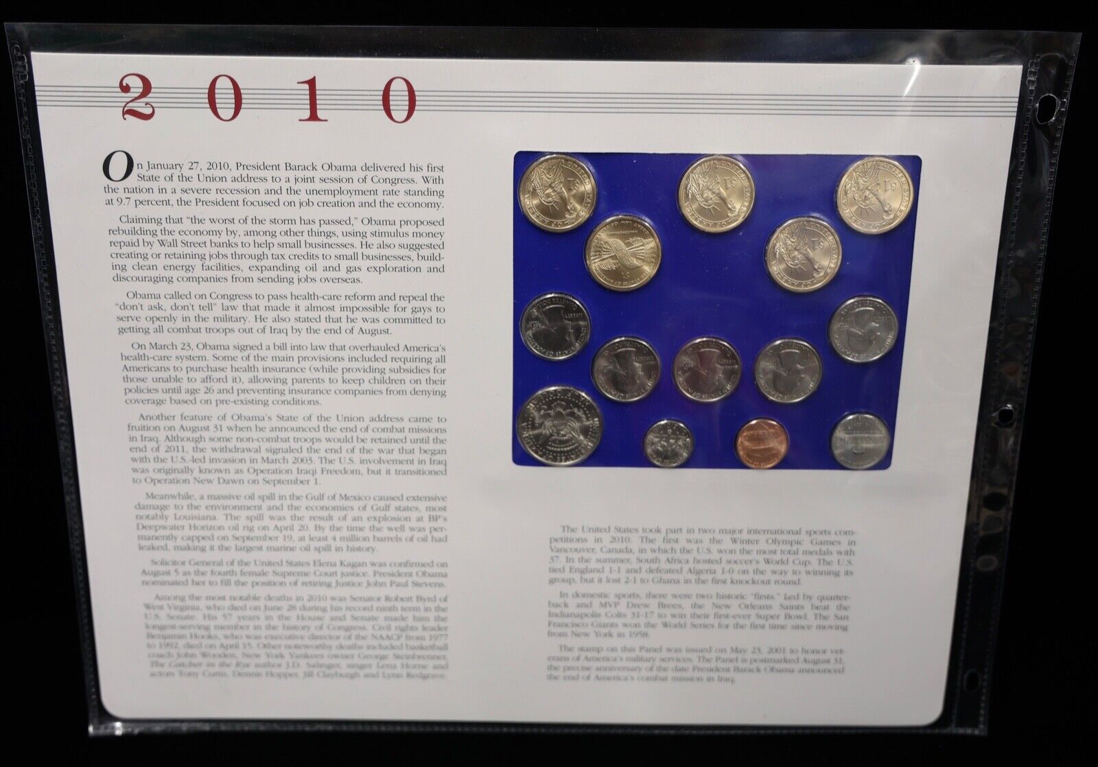 2010 P & D Uncirculated Mint Set Postal Commemorative Society Coins & Stamps