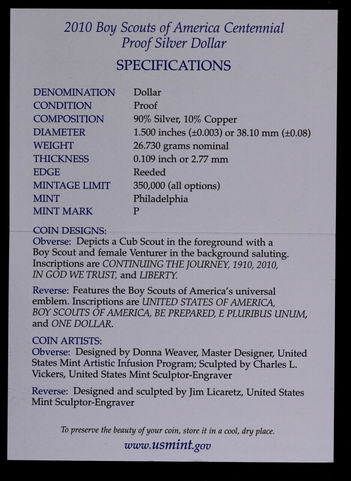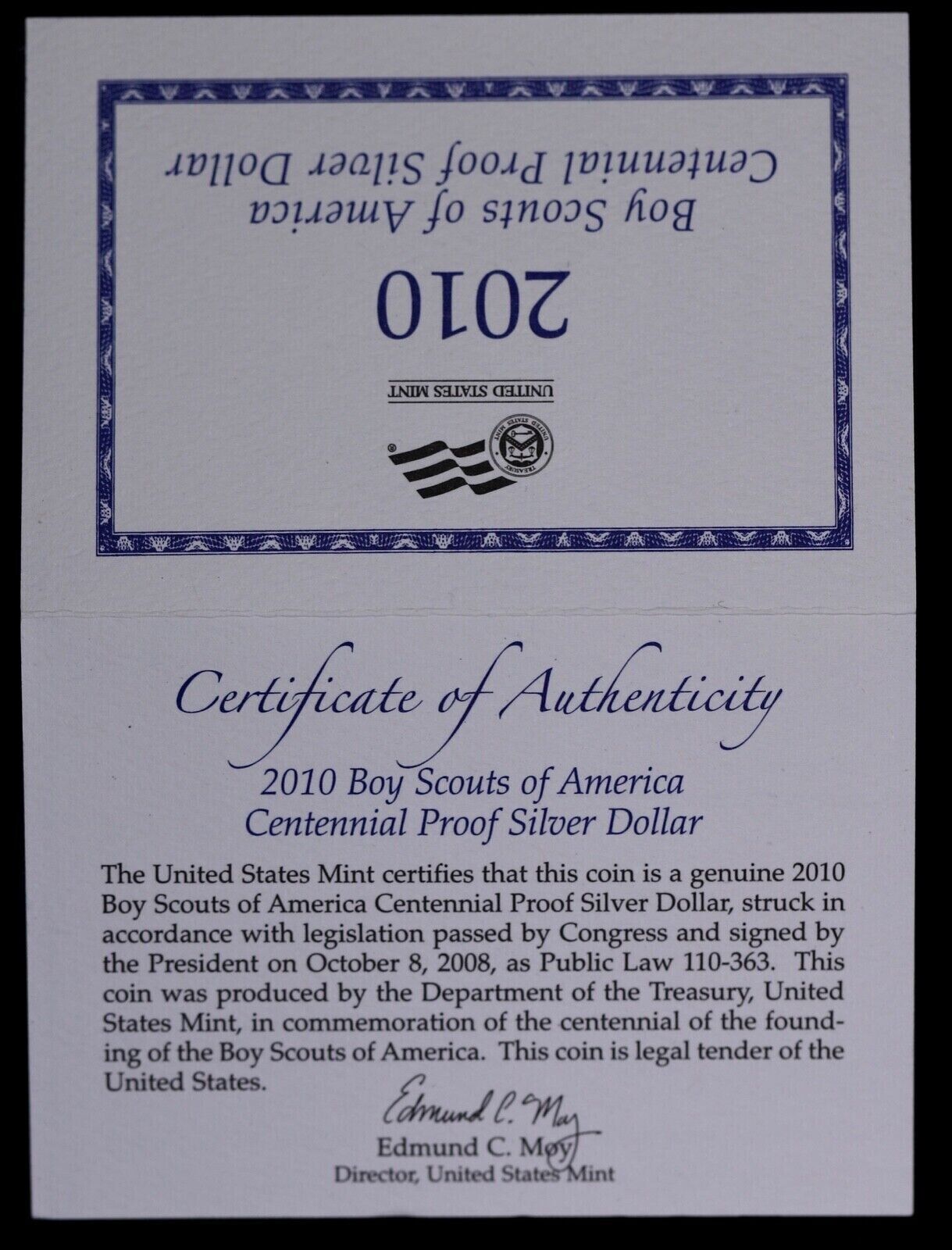 2010 P Proof Boy Scouts of America Commemorative Silver Dollar US Mint OGP COA