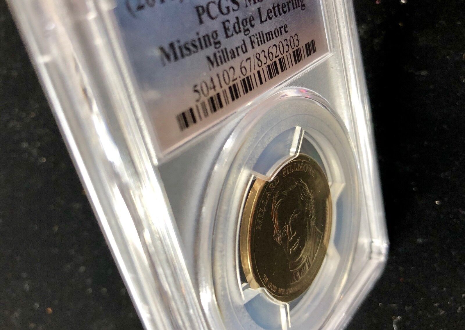 2010 PCGS MS67 Millard Fillmore Missing Edge Lettering Error Presidential Dollar