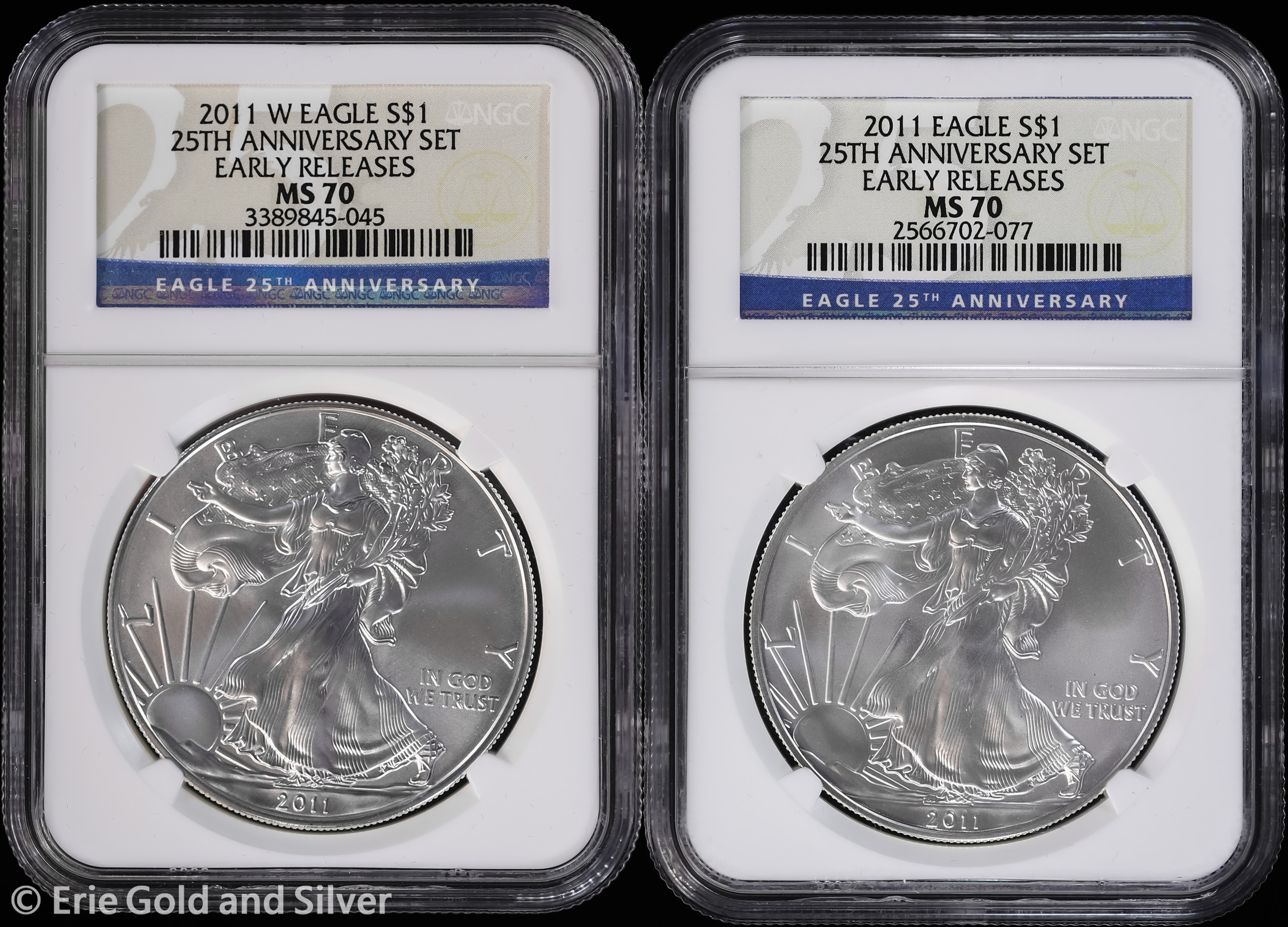 2011 American Silver Eagle 25th Anniversary 5 Coin Set NGC MS & PR 70 | Early Releases