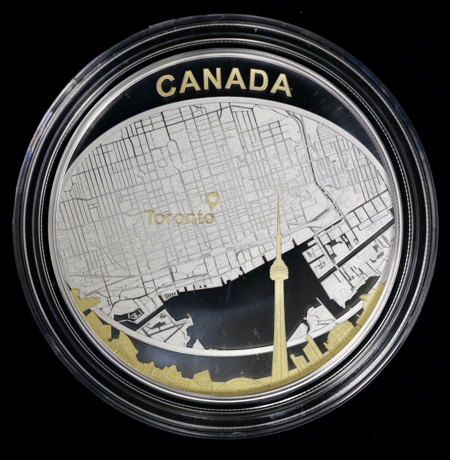 2011 $25 2 oz Fine Silver Proof Coin ~ Toronto City Map Canada Gold Gilded Tower