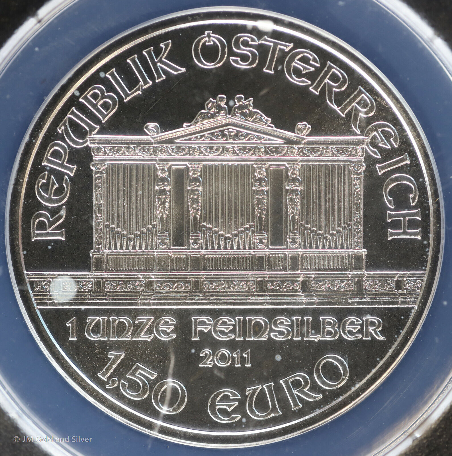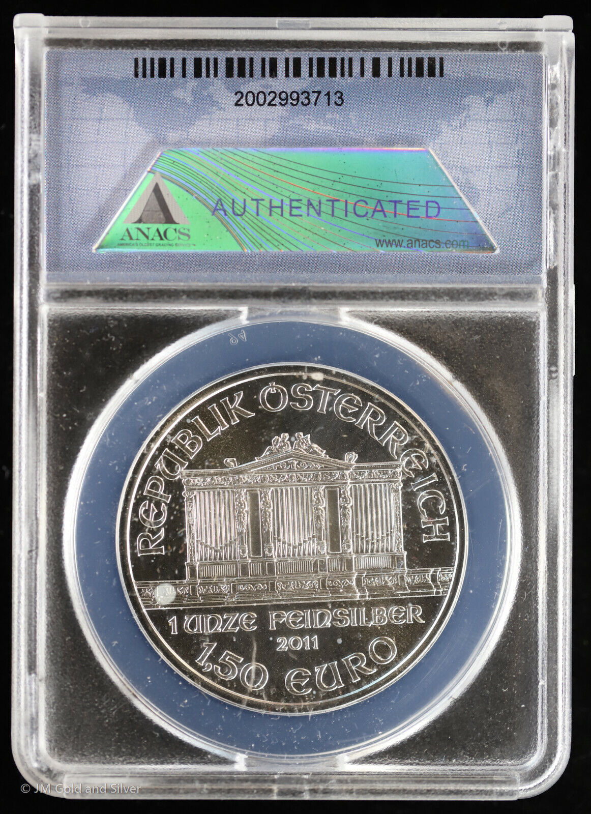 2011 Austria Philharmonic 1 oz Silver Coin 1.5 Euro ANACS MS 70 | UNC BU