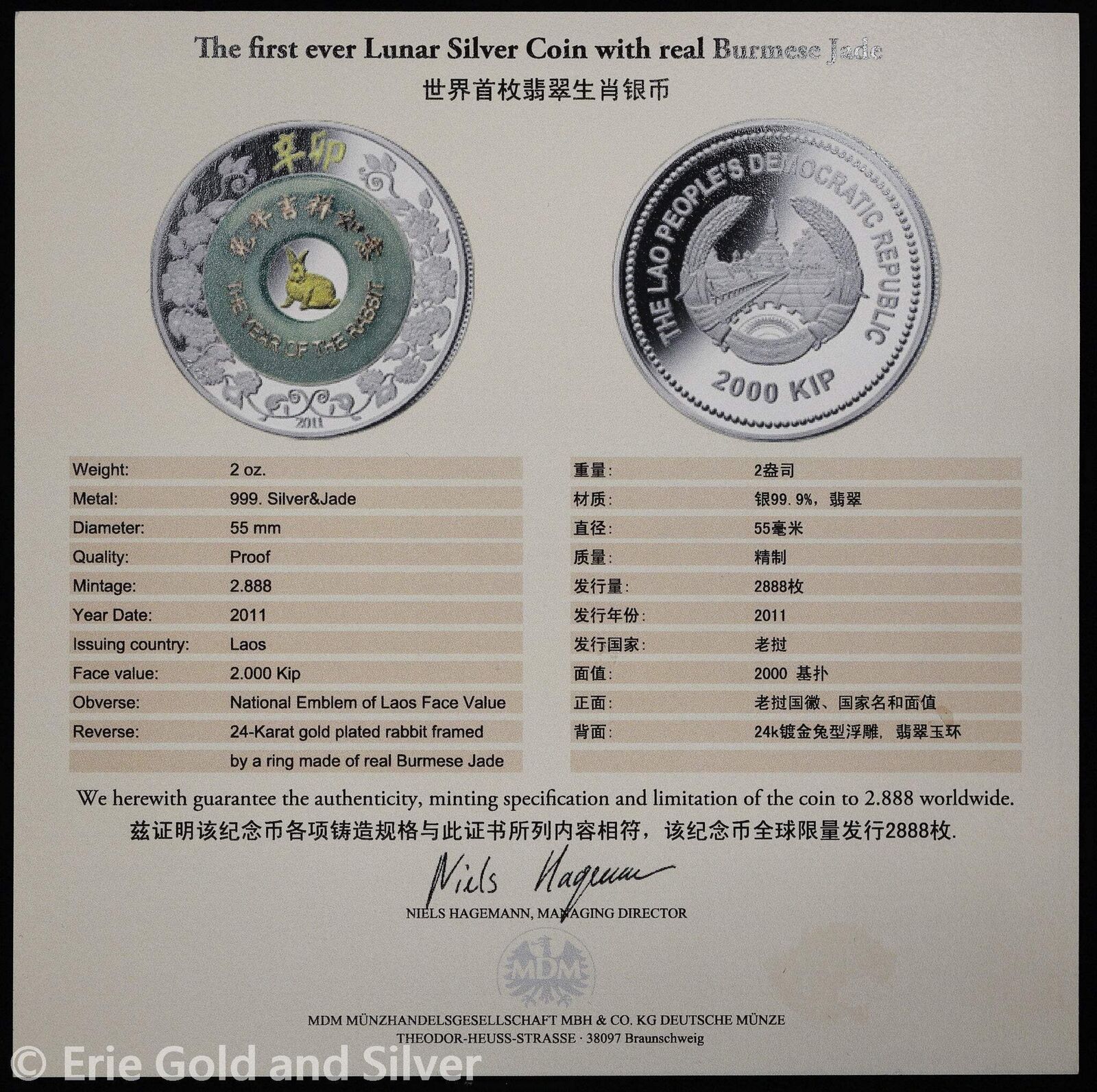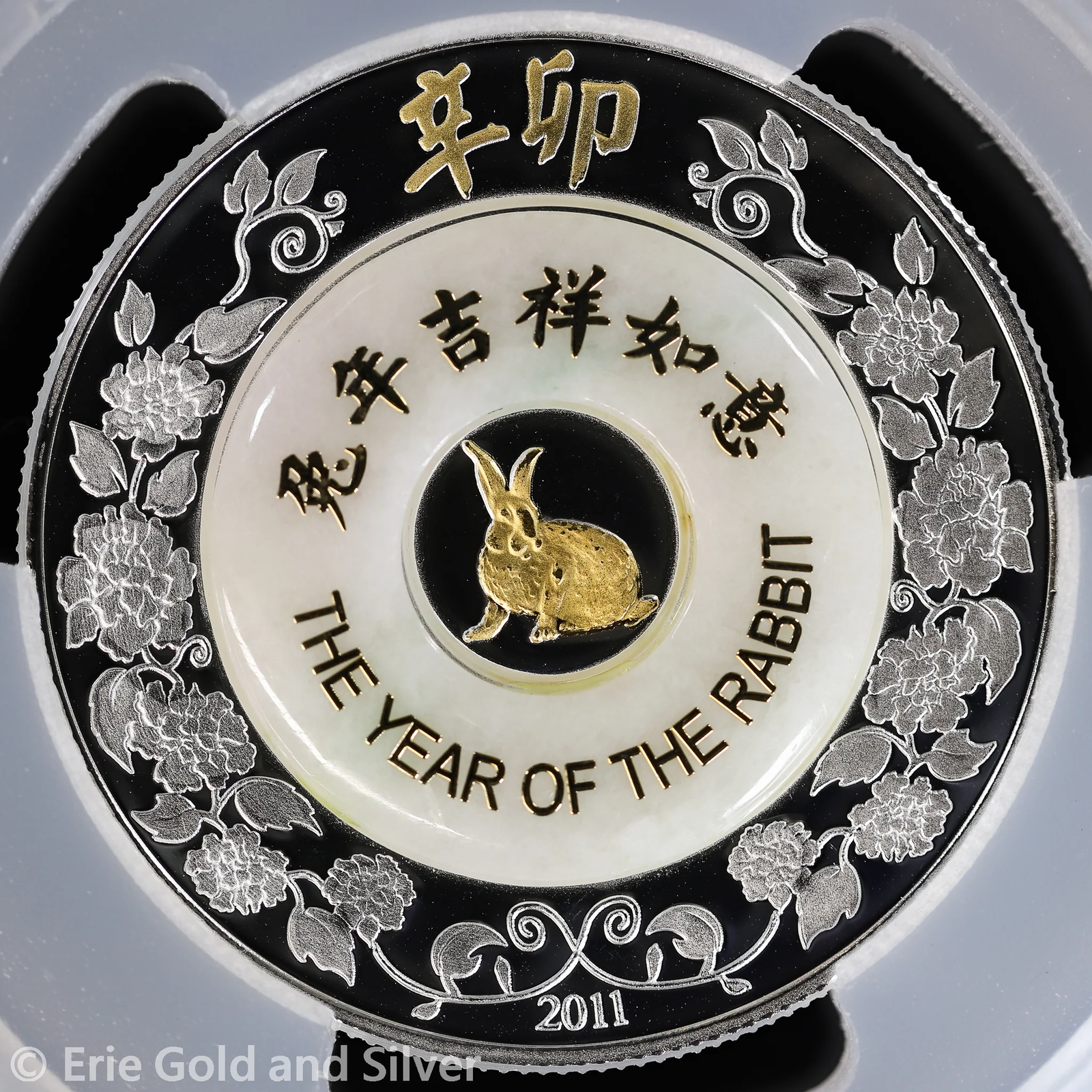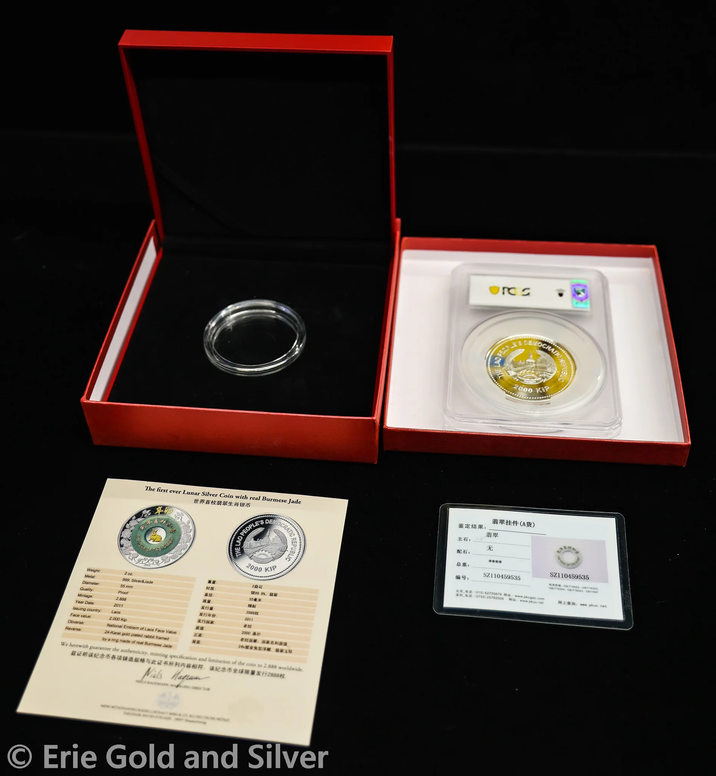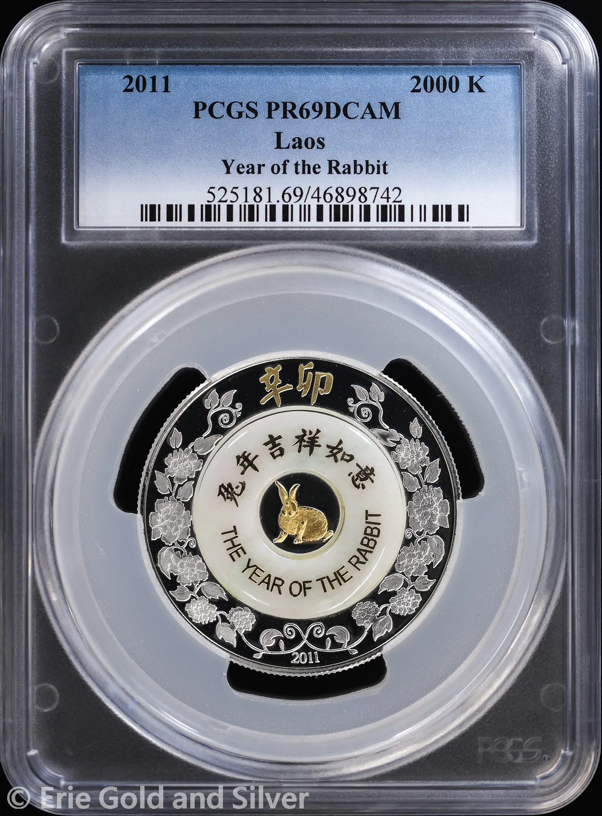 2011 Laos 2 oz Silver & Jade Proof Year of the Rabbit PCGS PR 69 DCAM | OGP COA