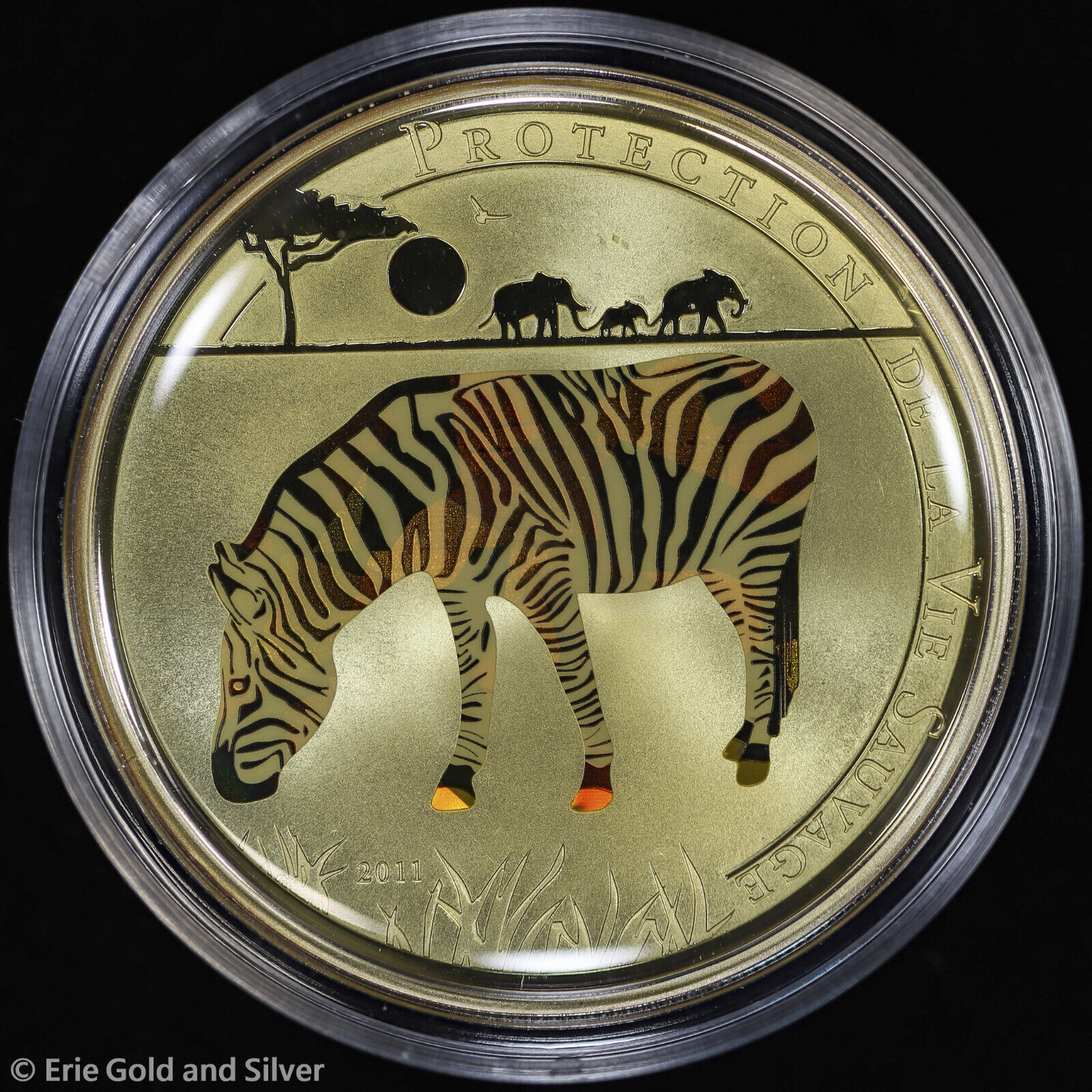 2011 Togo Hologram Zebra 25 g Sterling Silver 1000 Francs Coin w/ COA