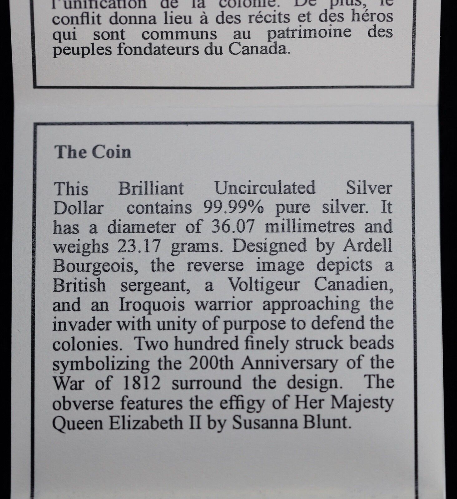 2012 $1 Canada War of 1812 Uncirculated Silver Dollar w/ Box and COA