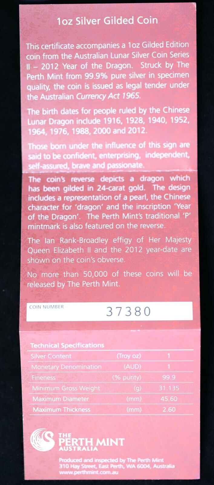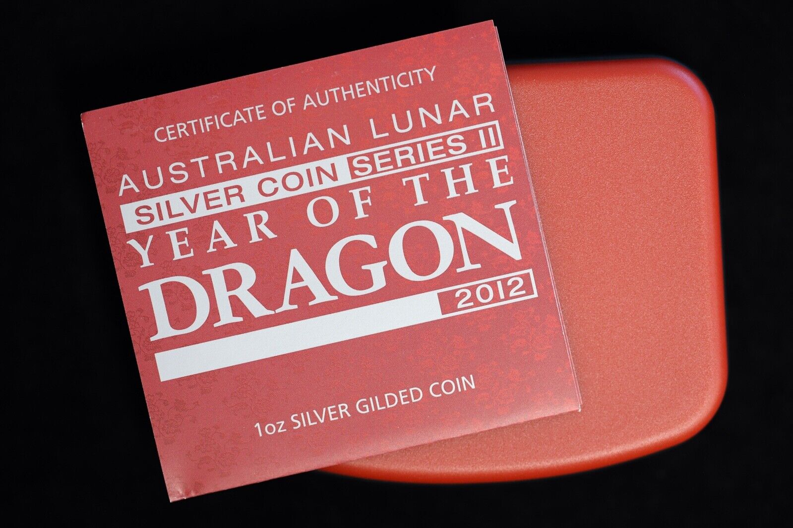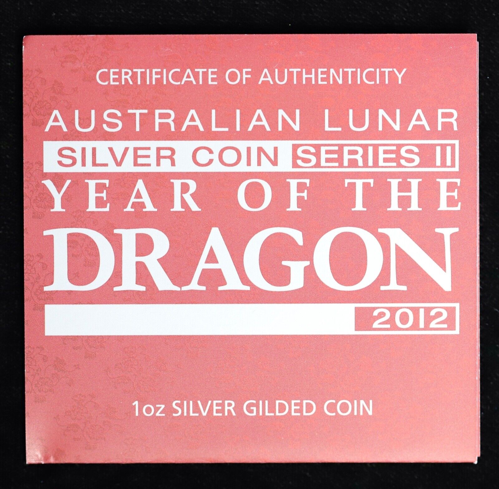 2012 Australian Lunar Year of the Dragon 1 oz .999 Fine Silver w/ Box & COA
