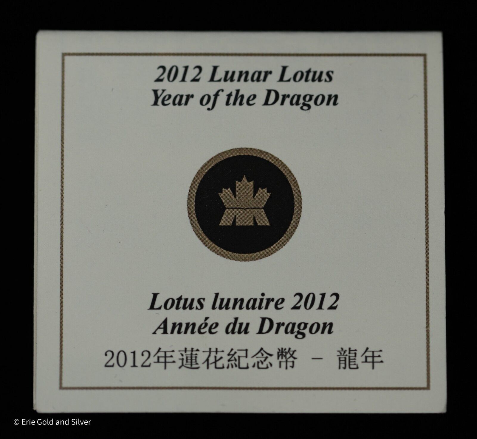 2012 Canada Lunar Lotus Year of the Dragon 1 oz Silver w/ COA