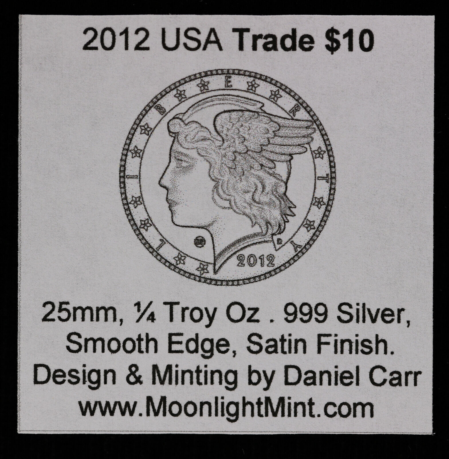 2012-D Dan Carr Winged Liberty Token 1/4 oz Silver USNA Trade $10 ANACS MS 70
