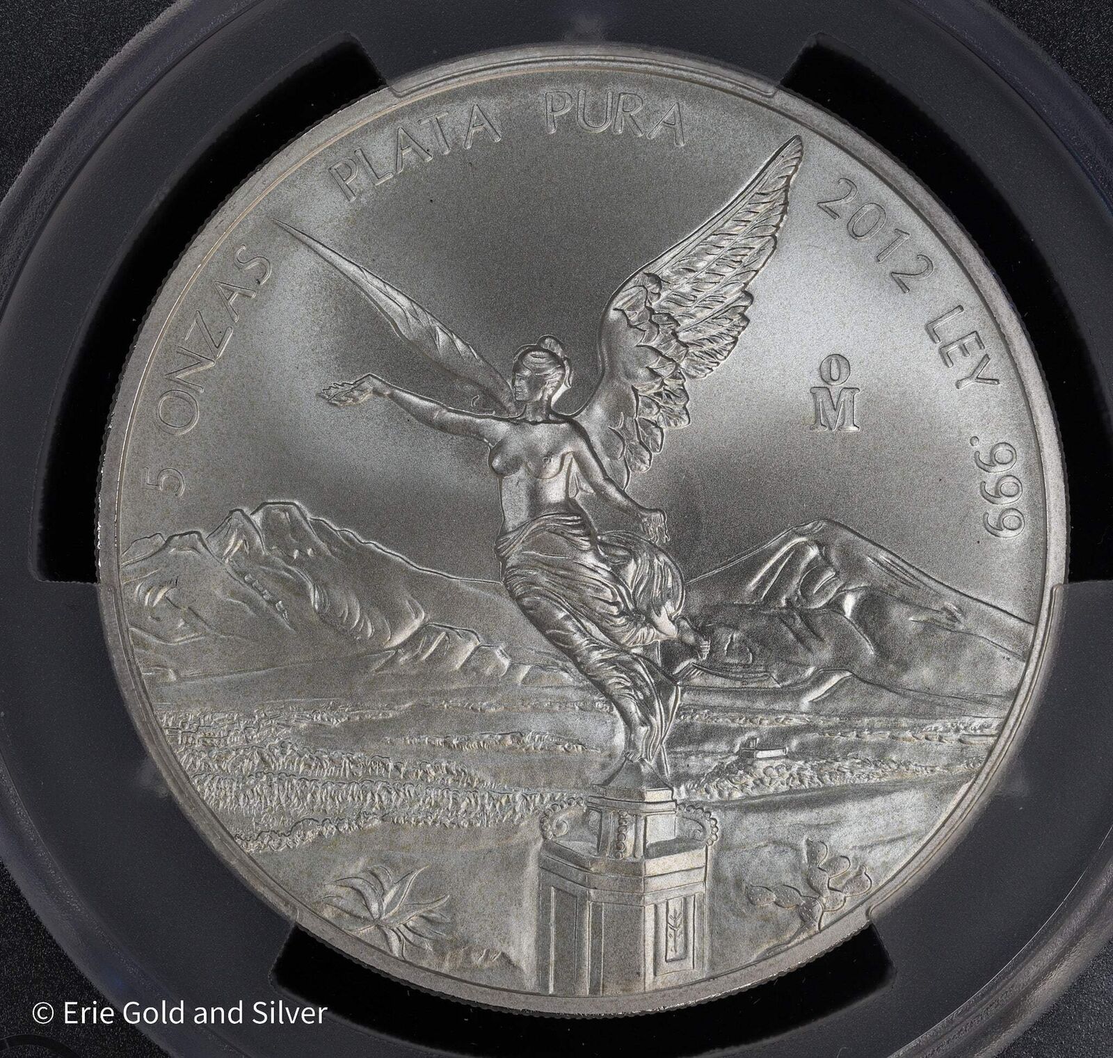 2012-Mo Onza Mexico 5 oz Silver Libertad PCGS MS 69 | Large Slab