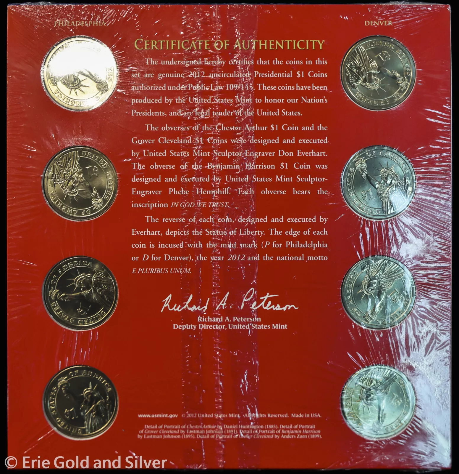 For sale is a 2012 U.S. Mint P&D Presidential Dollar 8-Coin Mint Set in OGP. View pictures for details and condition. There are multiple available, so the coin you receive may not be the exact coin pictured, however it will be similar quality. Feel free to contact us with any questions.