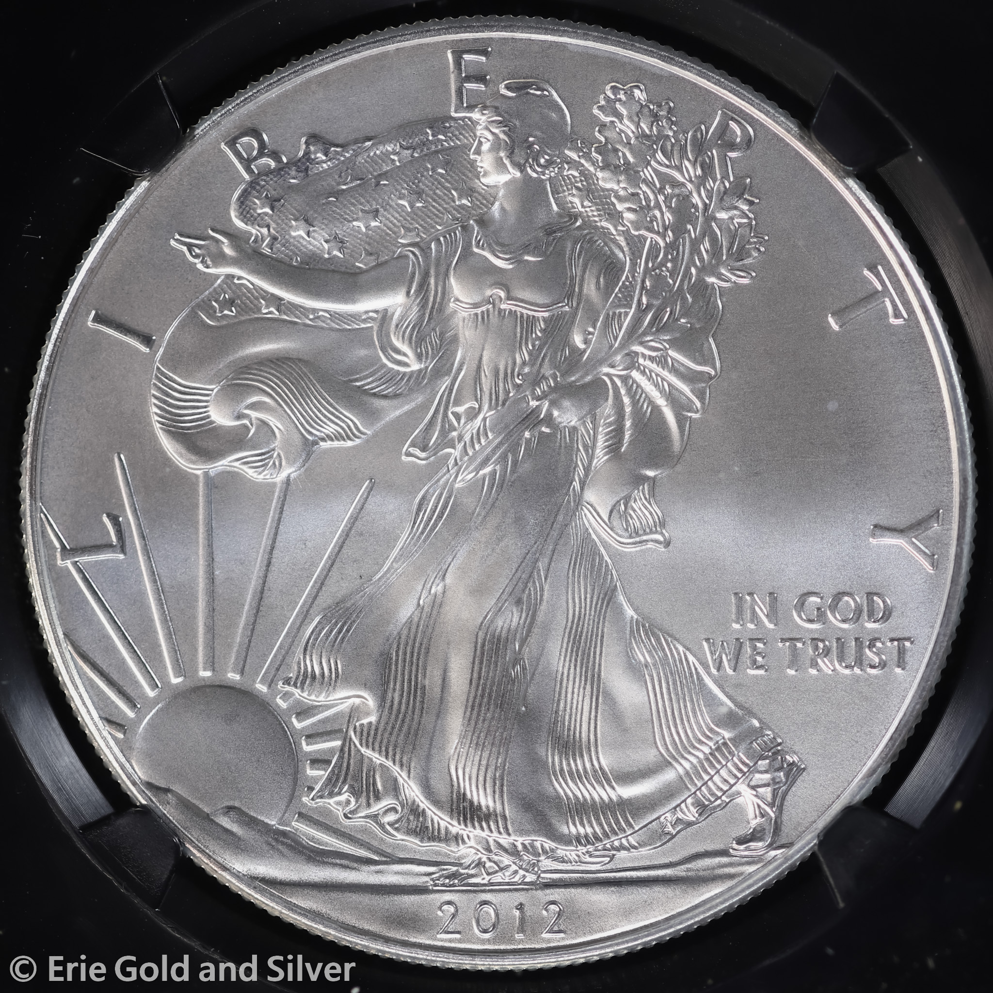 For sale is a 2012-(W) American Silver Eagle. Certified / graded by NGC at MS 70.
