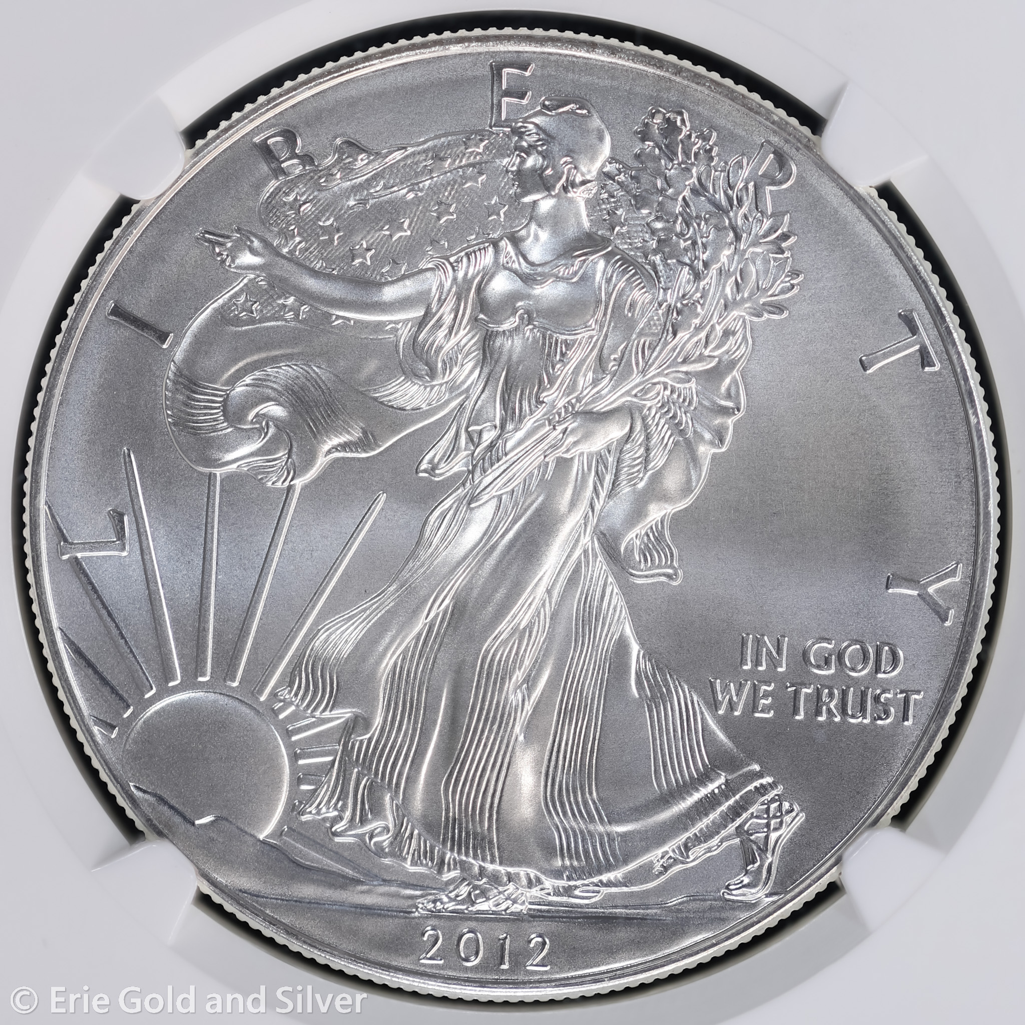 For sale is a 2012-(W) American Silver Eagle. Certified / graded by NGC at MS 70.