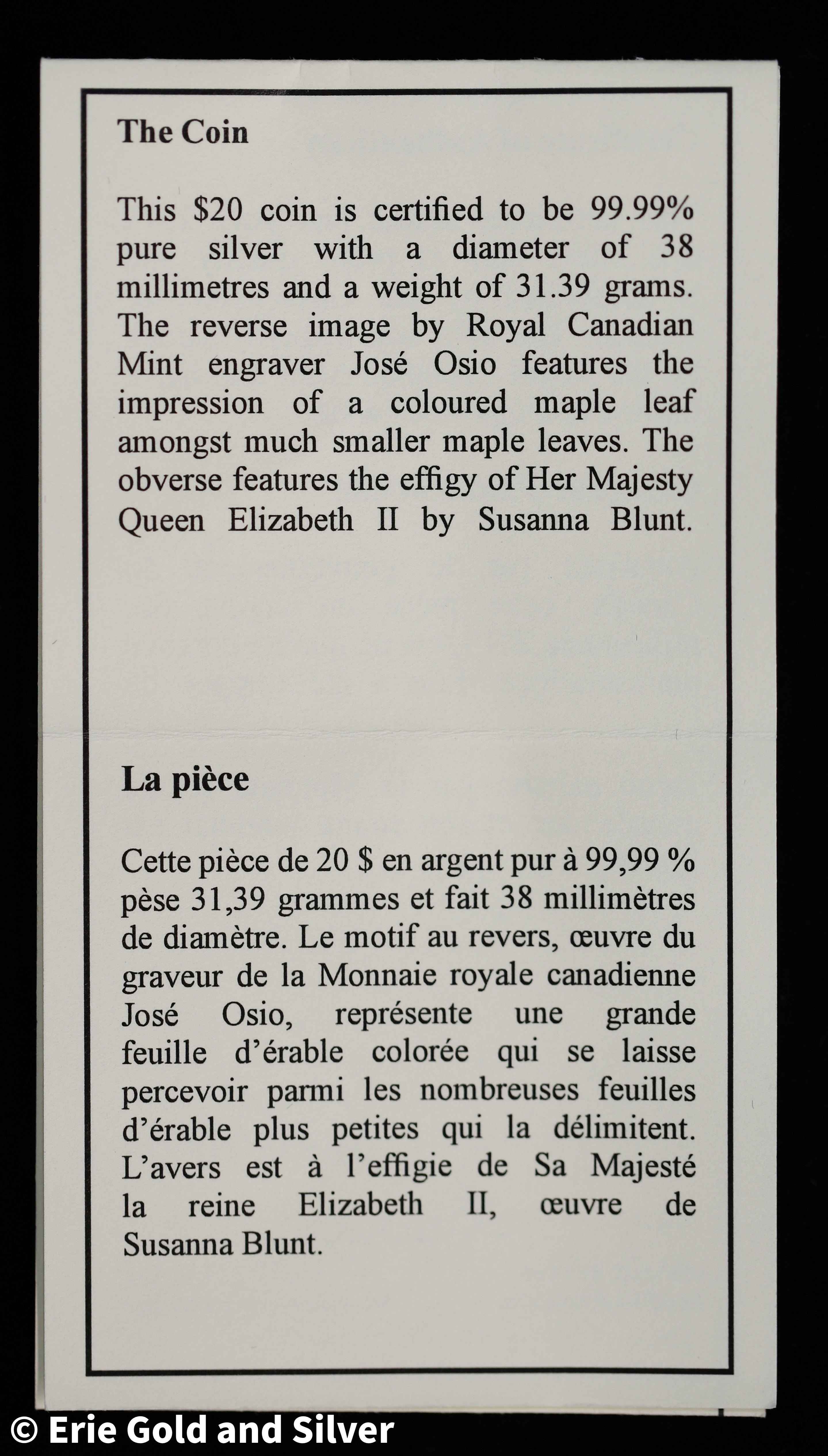 2013 $20 Canadian Maple Leaf Impression 1 oz Silver w/ COA