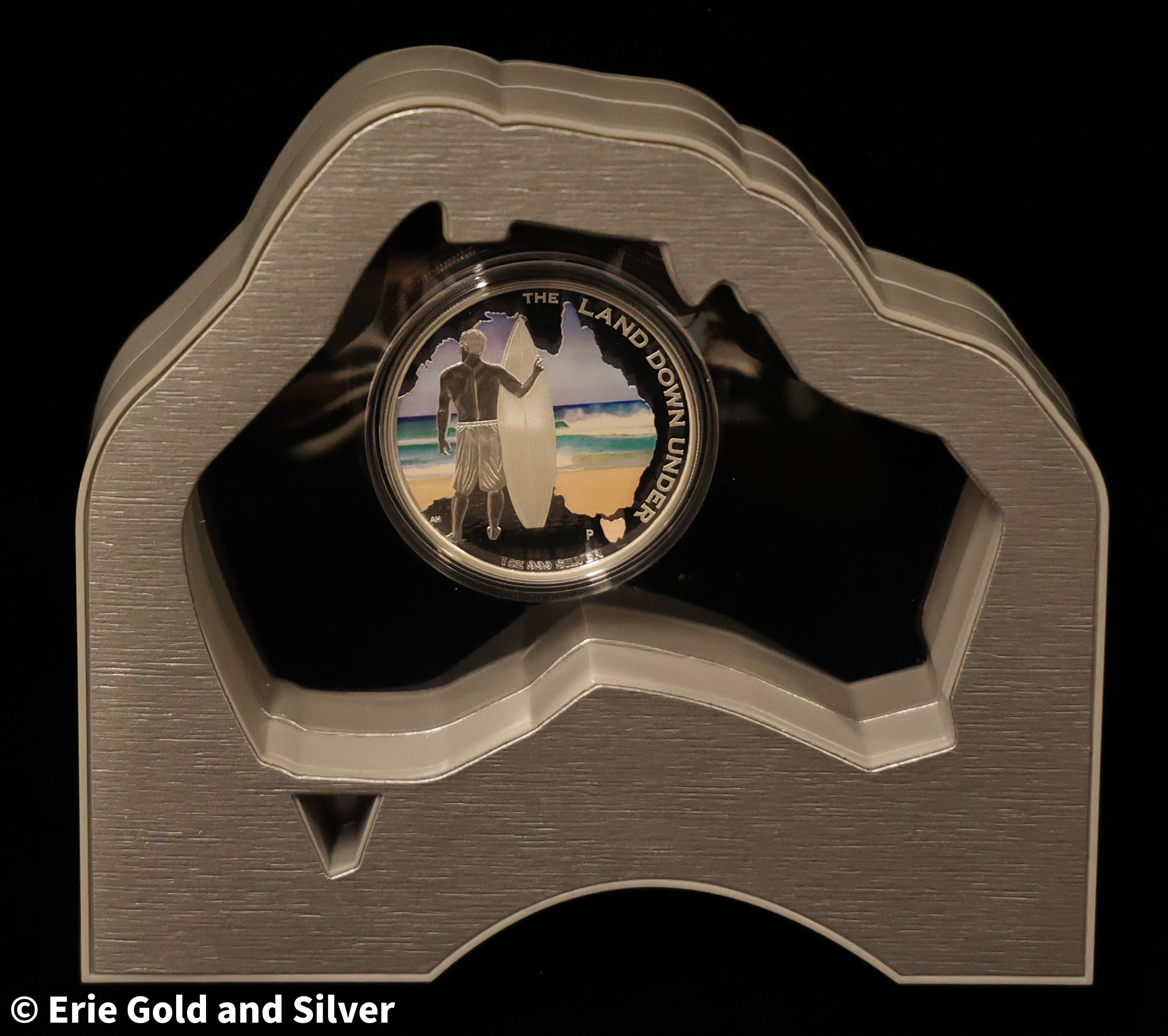 For sale is a 2013 Australia $1 The Land Down Under Surf 1 oz Silver Proof Coin in OGP.