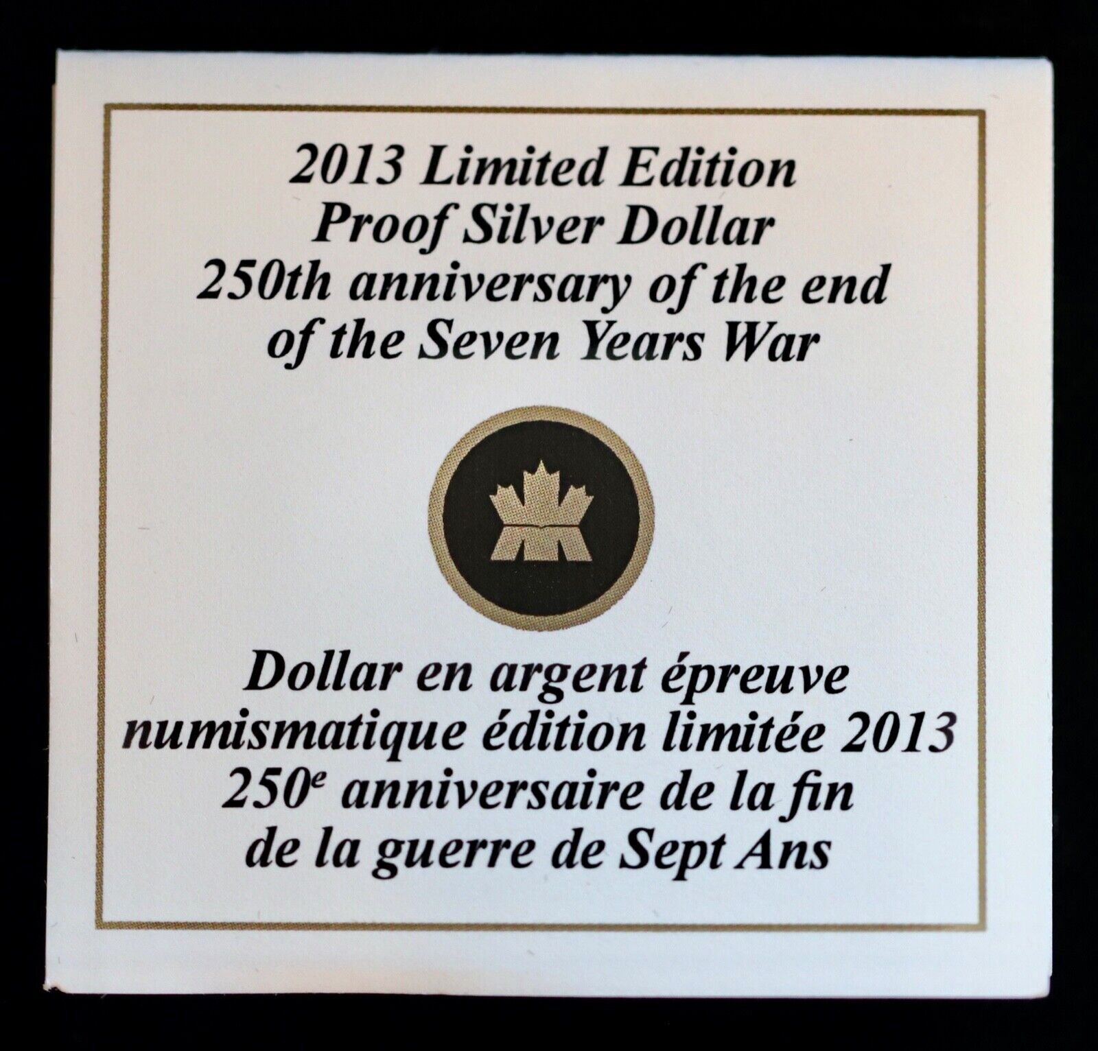 2013 Canadian Dollar 250th Anniversary of the end of the Seven Years War