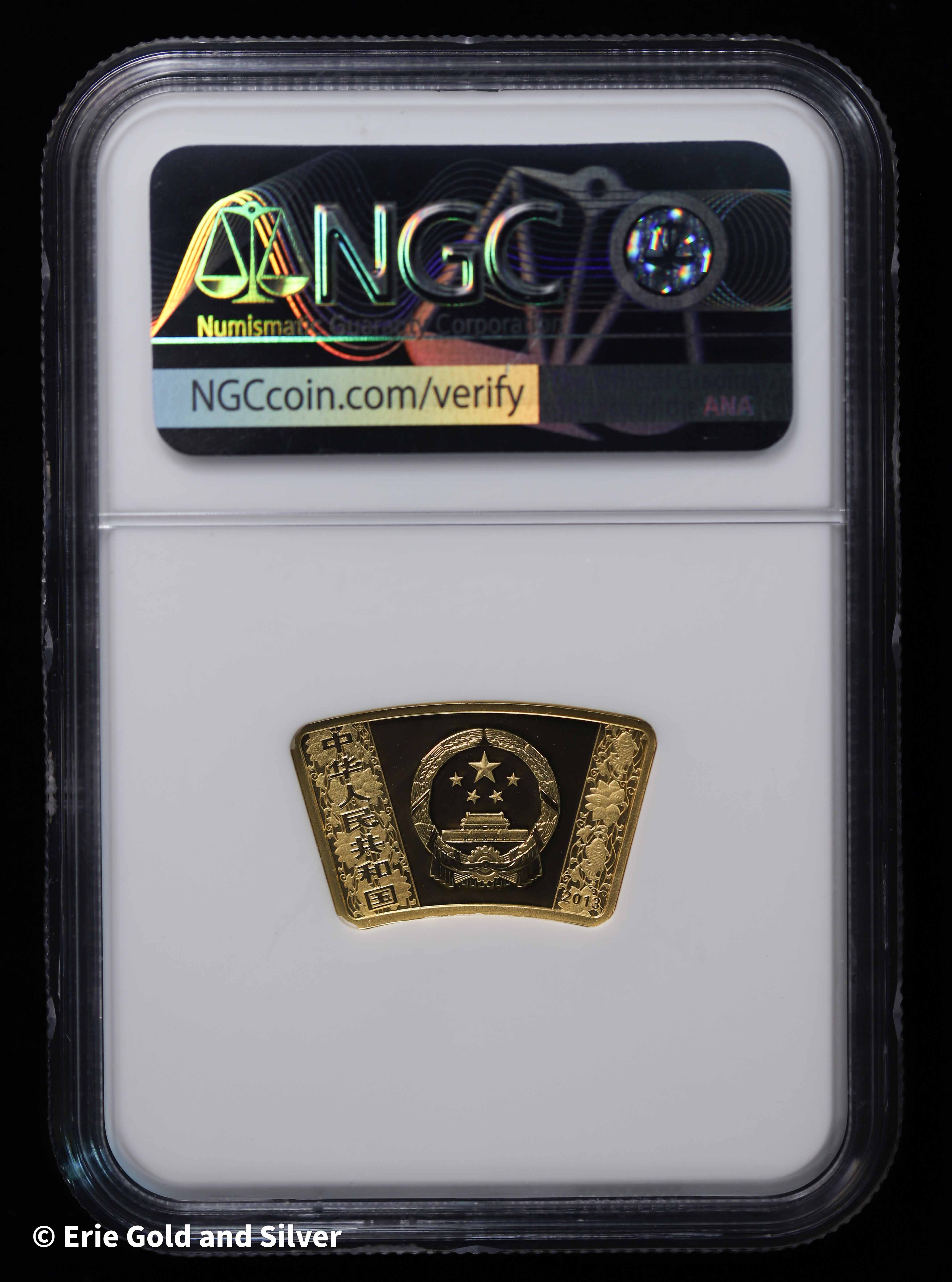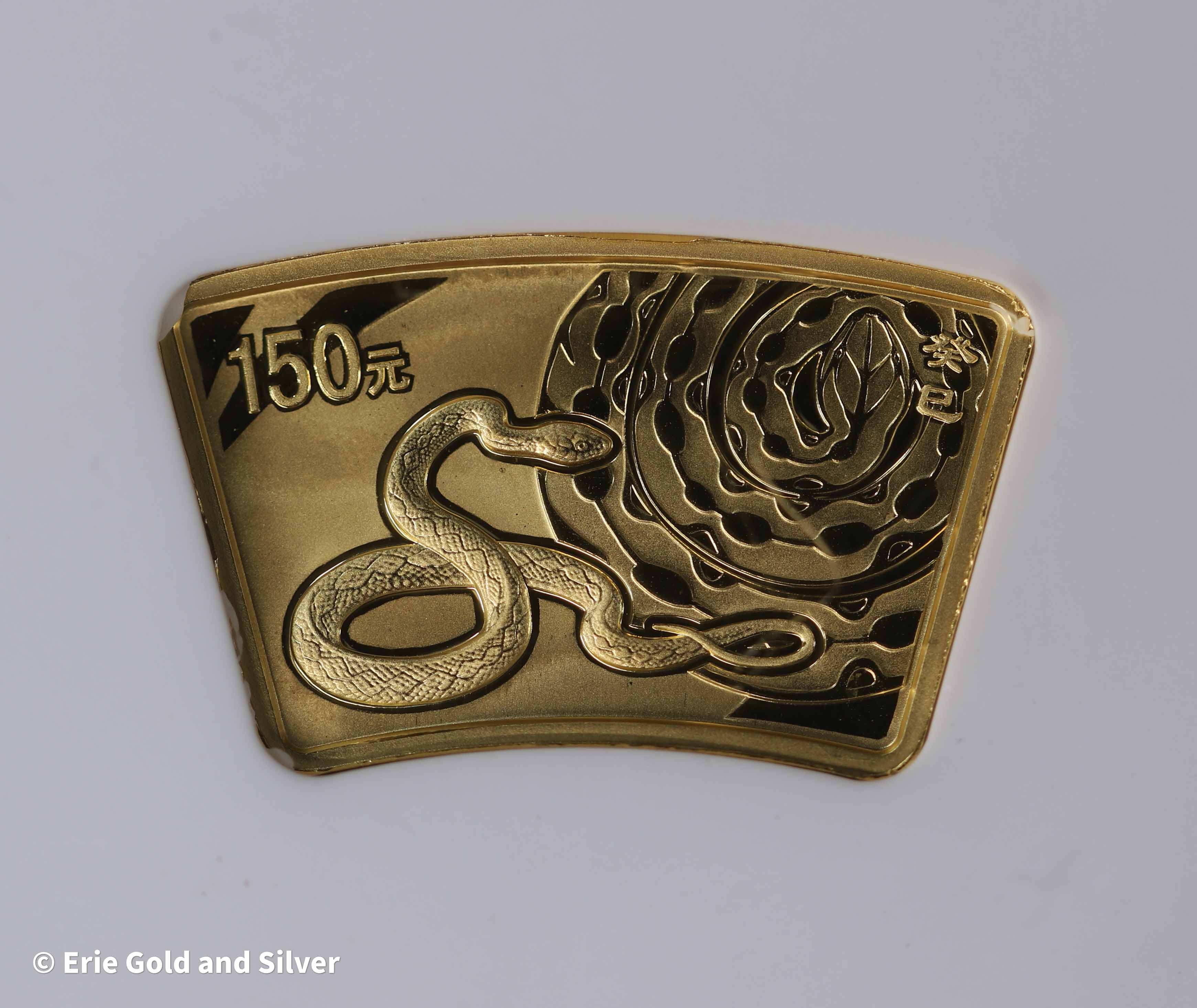 Celebrate the Chinese zodiac with the 2013 Fan China Lunar Series Gold Snake Coin. This beautifully designed coin features an elegant fan-shaped format showcasing the Year of the Snake with intricate detail and cultural symbolism. Struck in gold with a brilliant proof finish, this exceptional piece has been graded a perfect PR 70 Ultra Cameo by Numismatic Guaranty Company, offering flawless surfaces and striking contrast. A standout collectible for fans of lunar-themed coins and high-grade world gold issues.