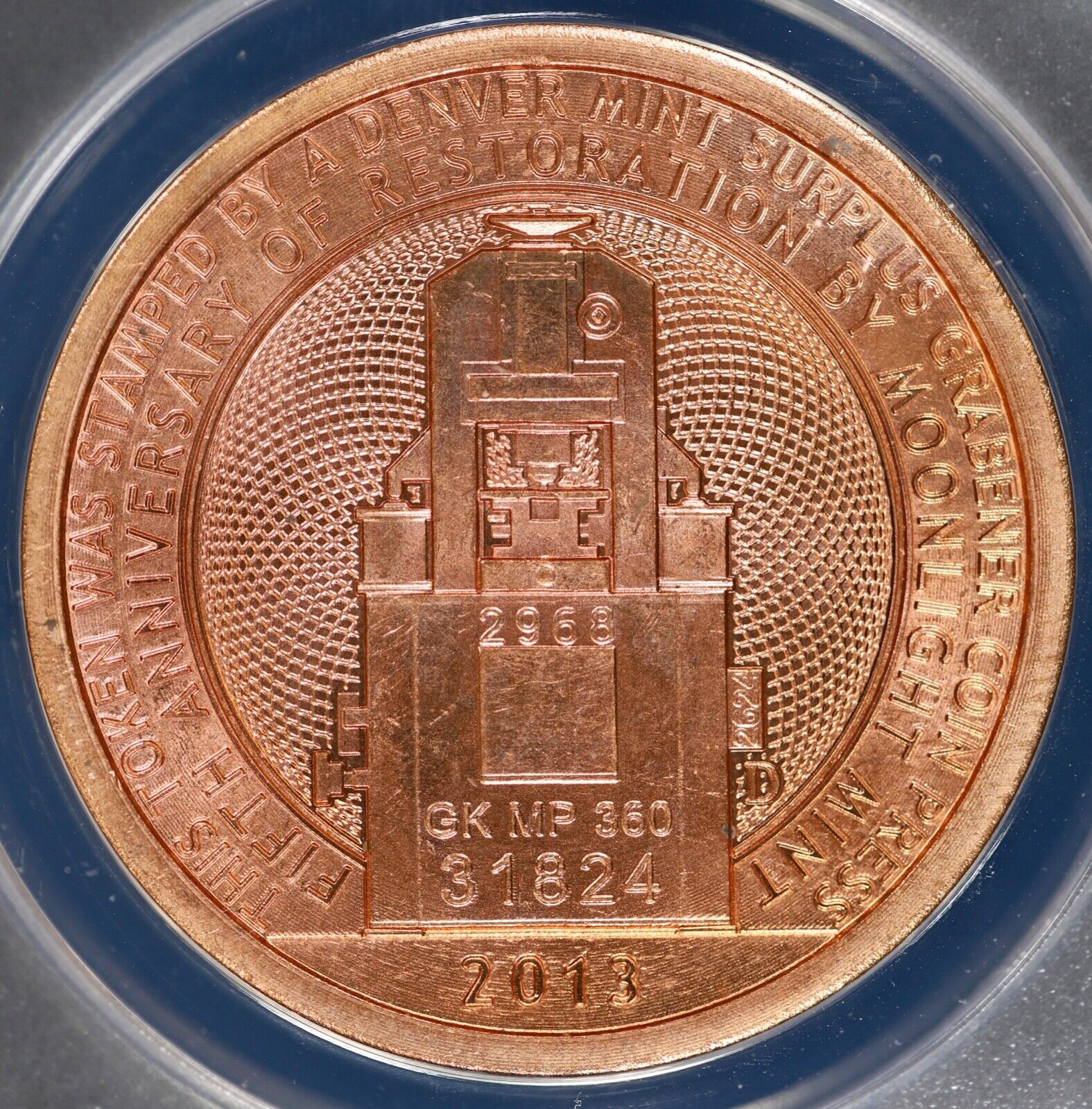 2013 Medal Copper 5th Anniv Grabener Coin Press ANACS MS 65 Red | Dan Carr