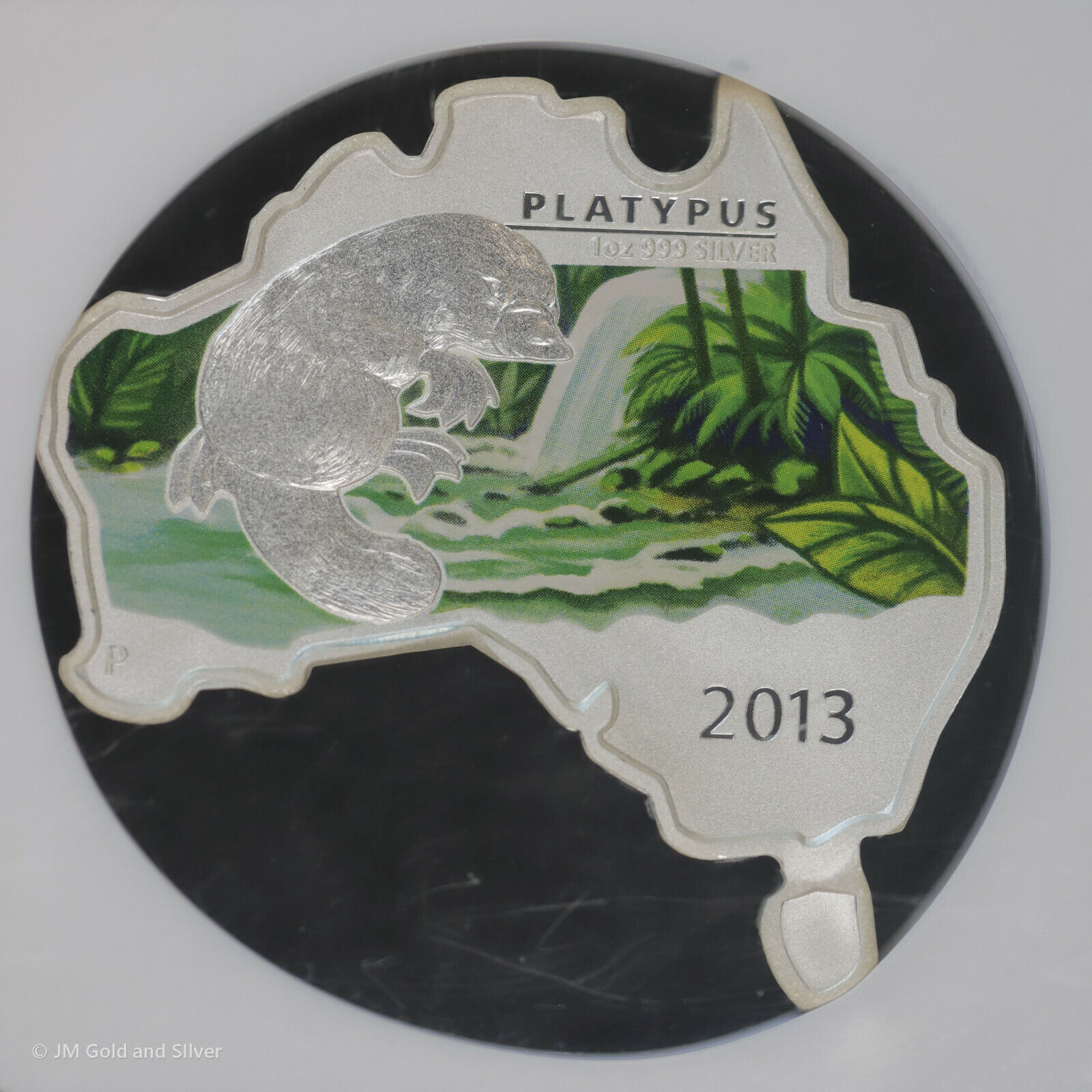 2013 P Australia Silver Colorized Platypus NGC MS 70 | Map Series Early Releases