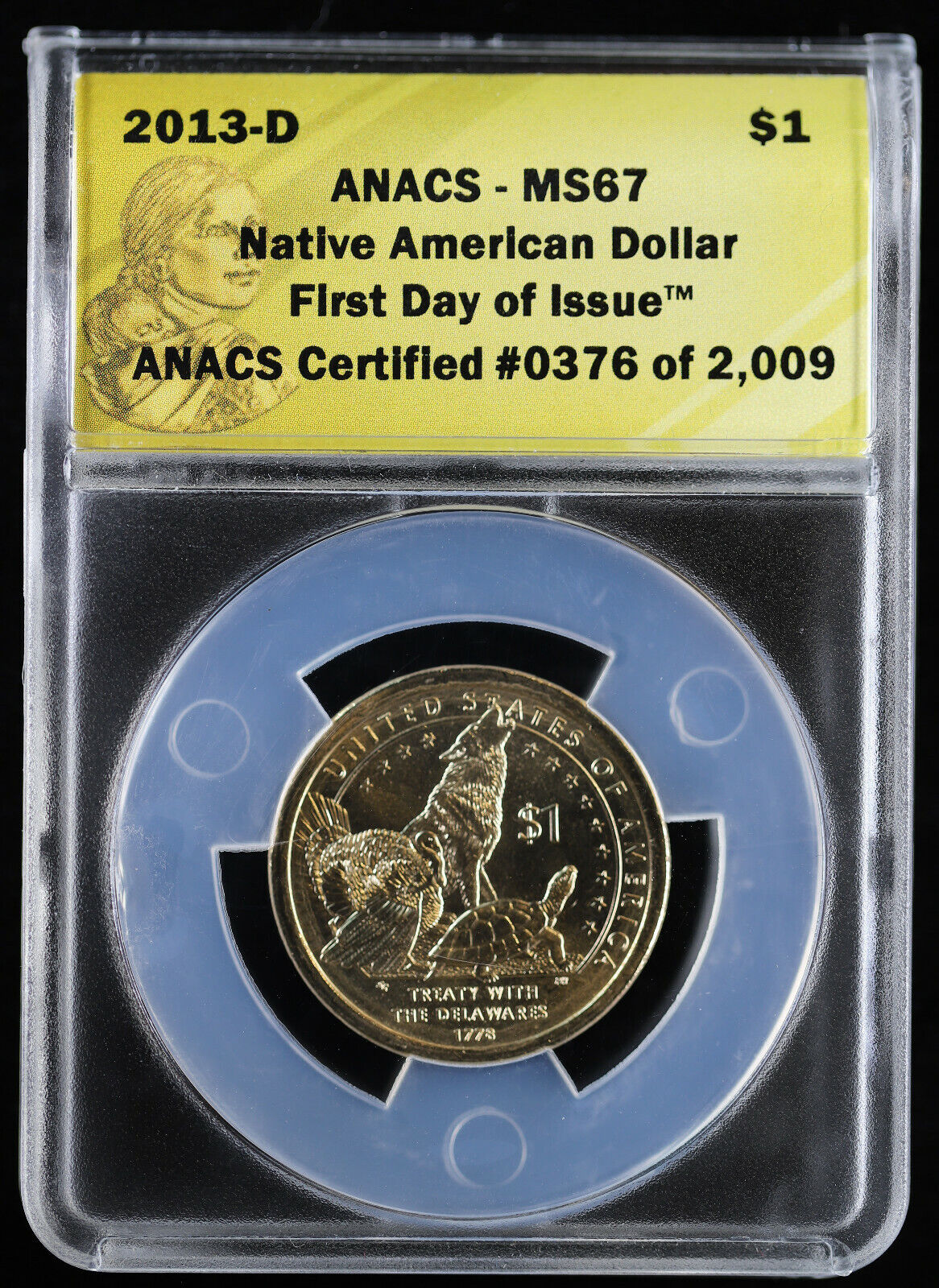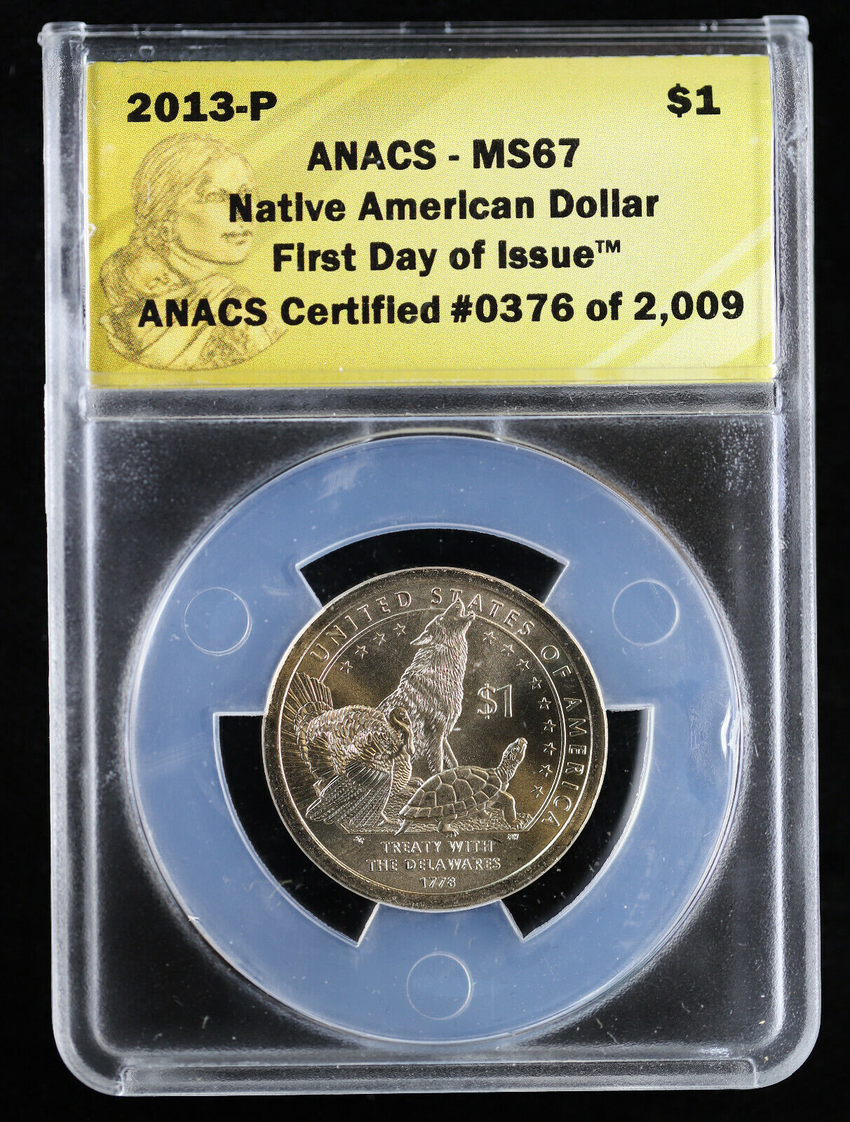 2013 P&D Sacagawea Native American Dollar Set ANACS MS 67 FDOI 2 coin w/ Box COA