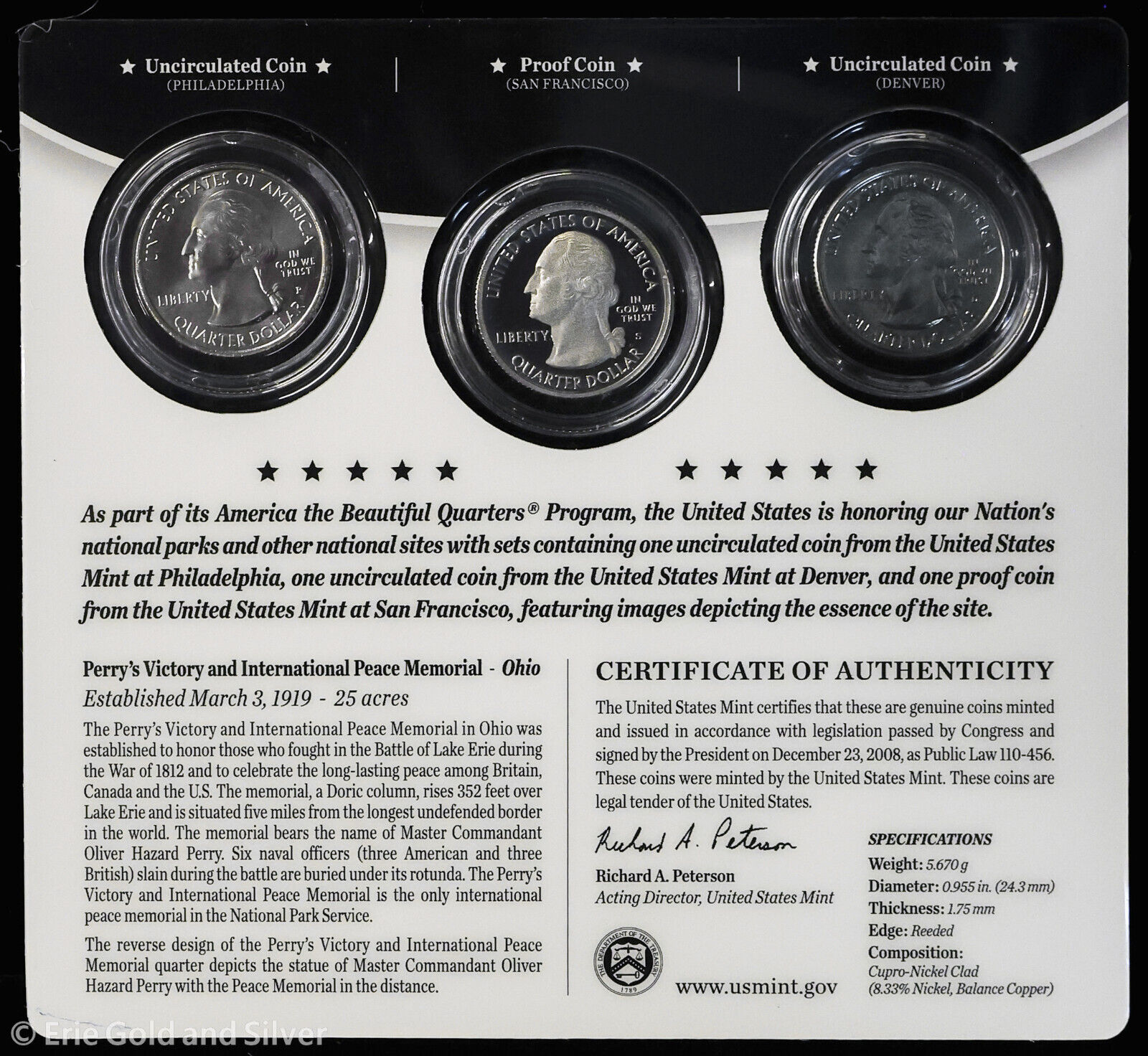 2013 PDS 25C US Mint ATB Perry's Victory Quarters 3 Coin Set | BU