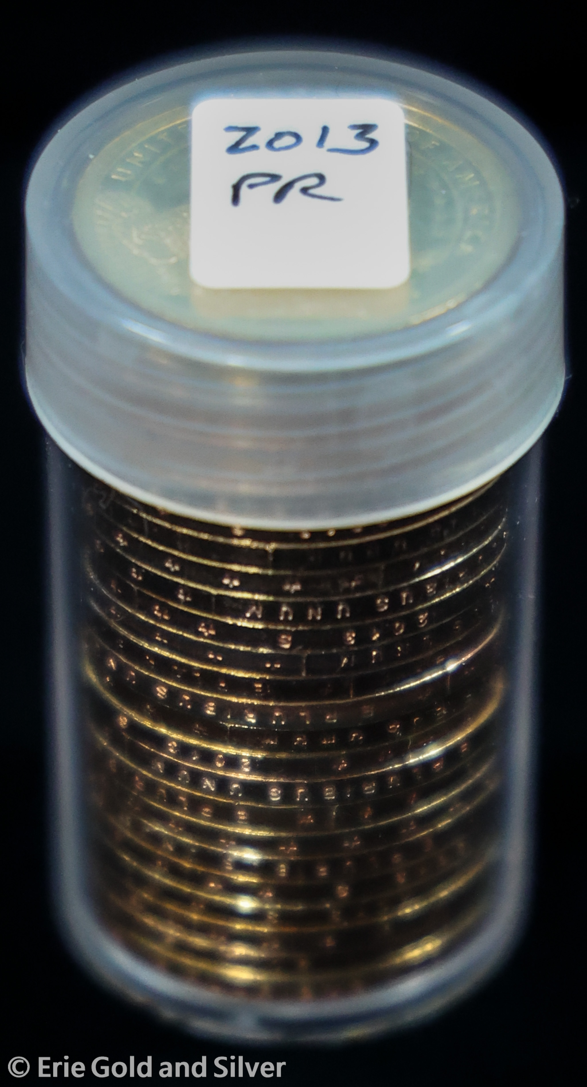 For sale is a 2013-S $1 Proof Native American Dollar Treaty With the Delawares Tube of 25.