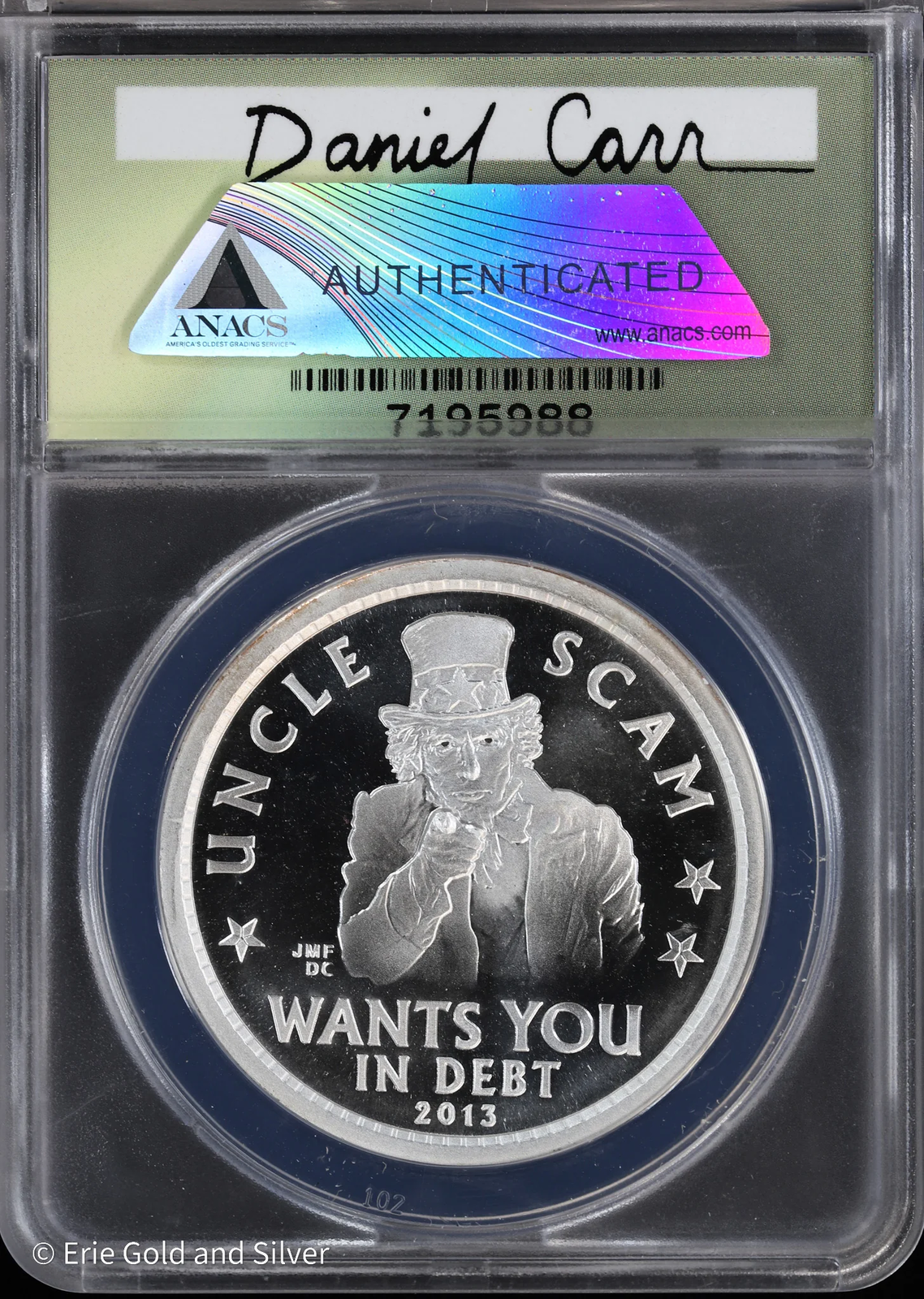 2013 Token Dan Carr Moonlight Mint Trillion $ Debt Limit Evasion ANACS MS 70 DCA