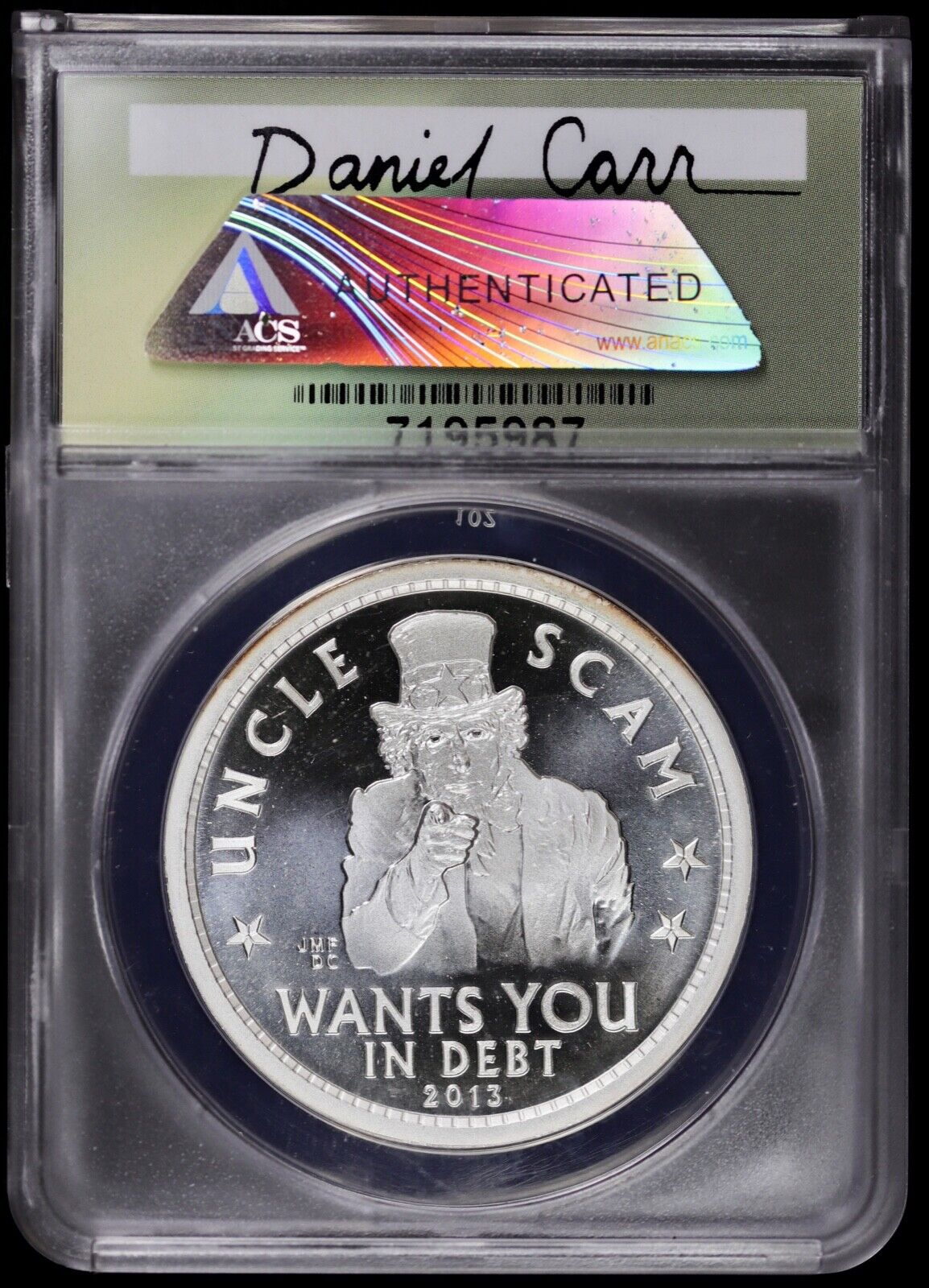 2013 Token Dan Carr Moonlight Mint Trillion $ Debt Limit Evasion ANACS MS70DCAM