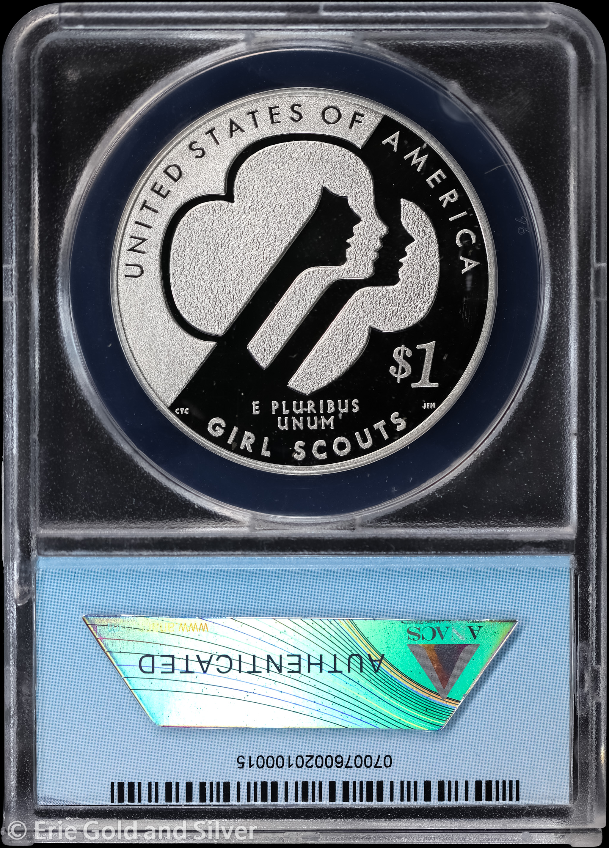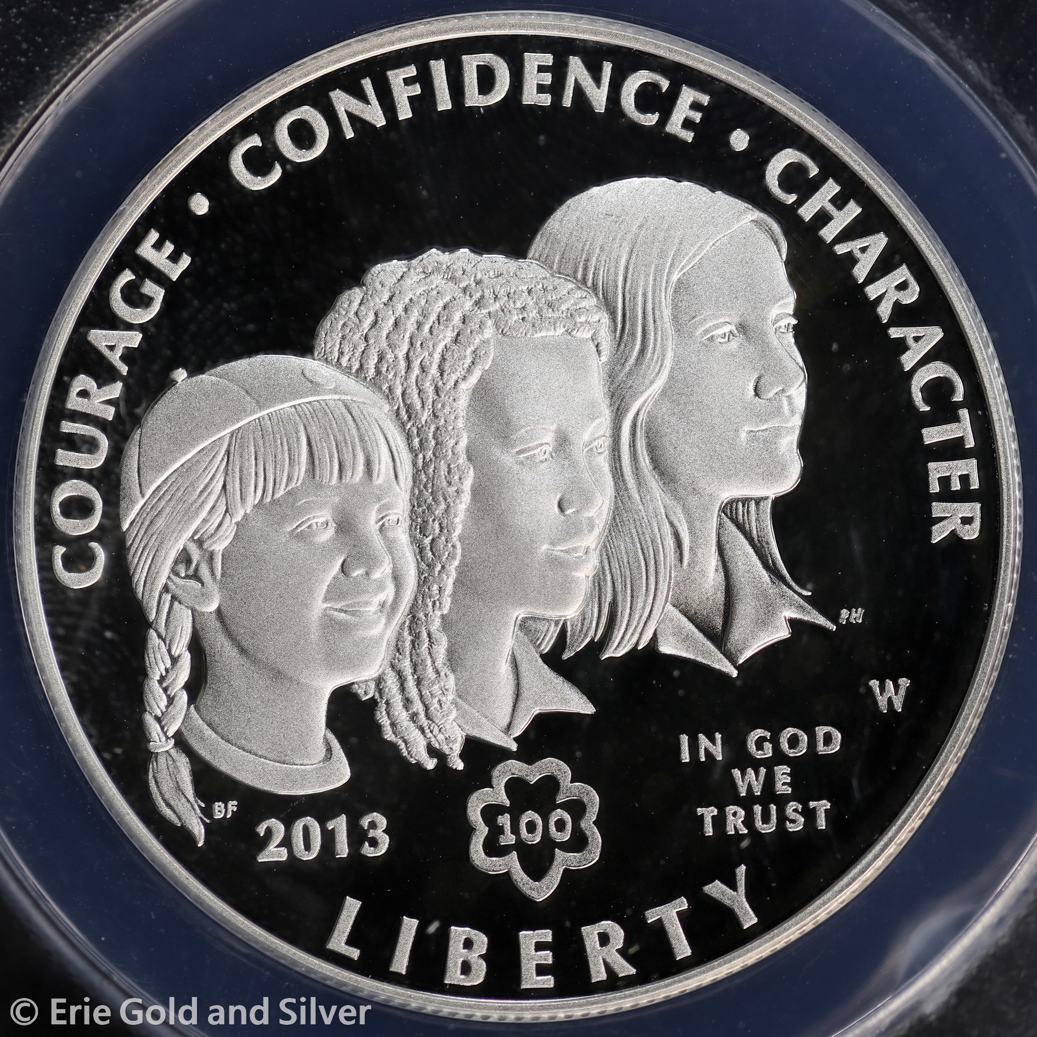For sale is a 2013-W Proof Girl Scouts of America Silver Dollar. Certified / graded by ANACS at PR 70 DCAM.
