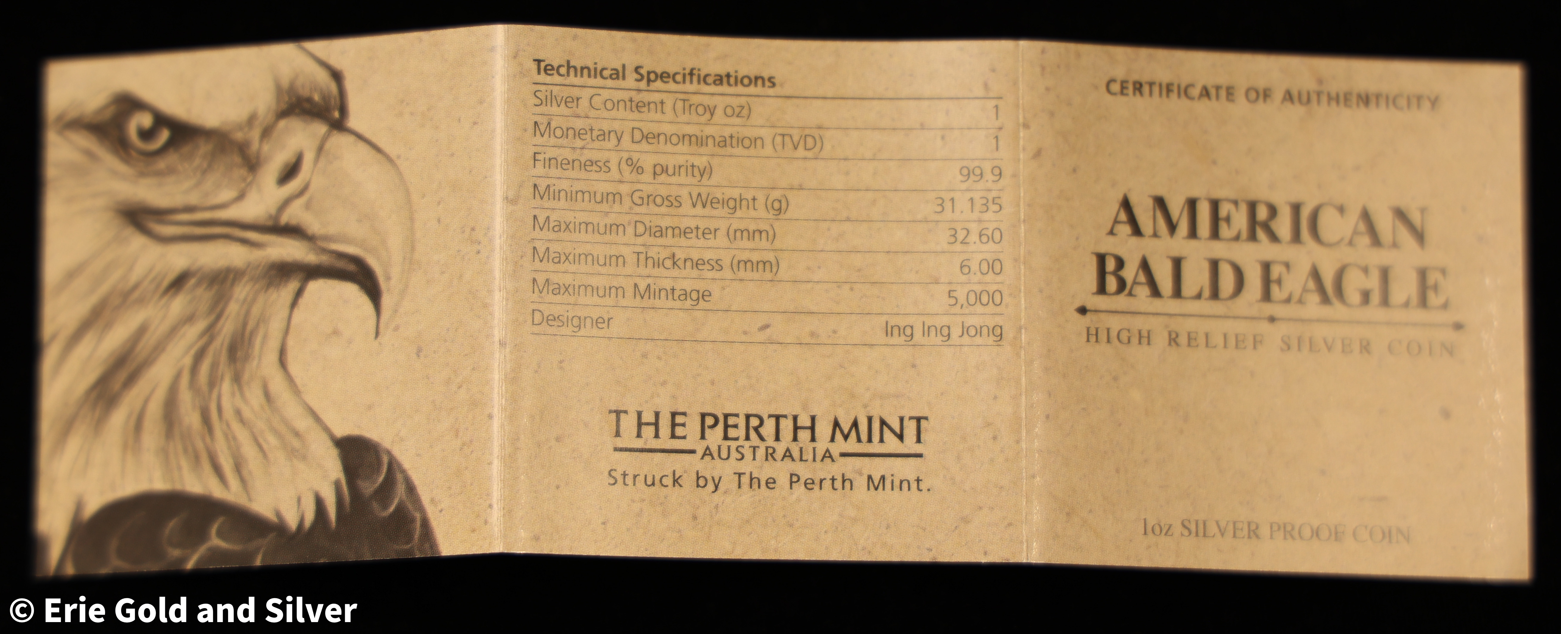 2014 $1 Tuvalu American Bald Eagle 1 oz Silver High Relief Coin in OGP