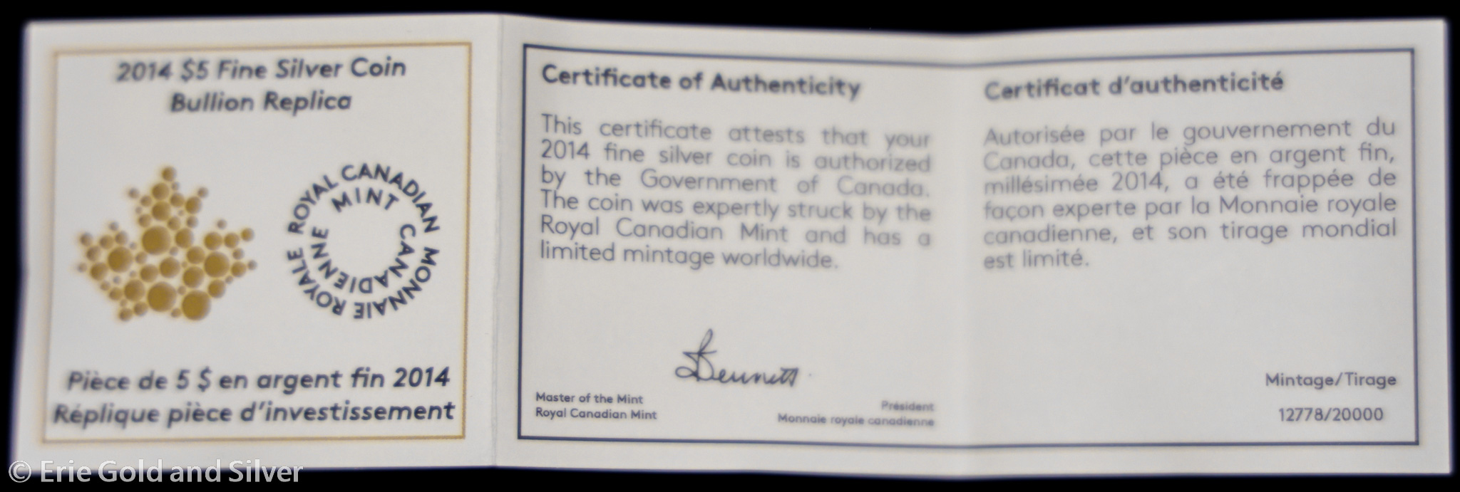 For sale is a 2014 $5 Canada 1 oz Silver Proof Maple Leaf in OGP.