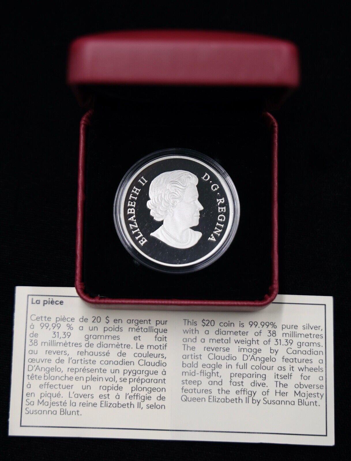 2014 Canada Bald Eagle Soaring over Northern Lake 1 oz Silver Proof Colorized
