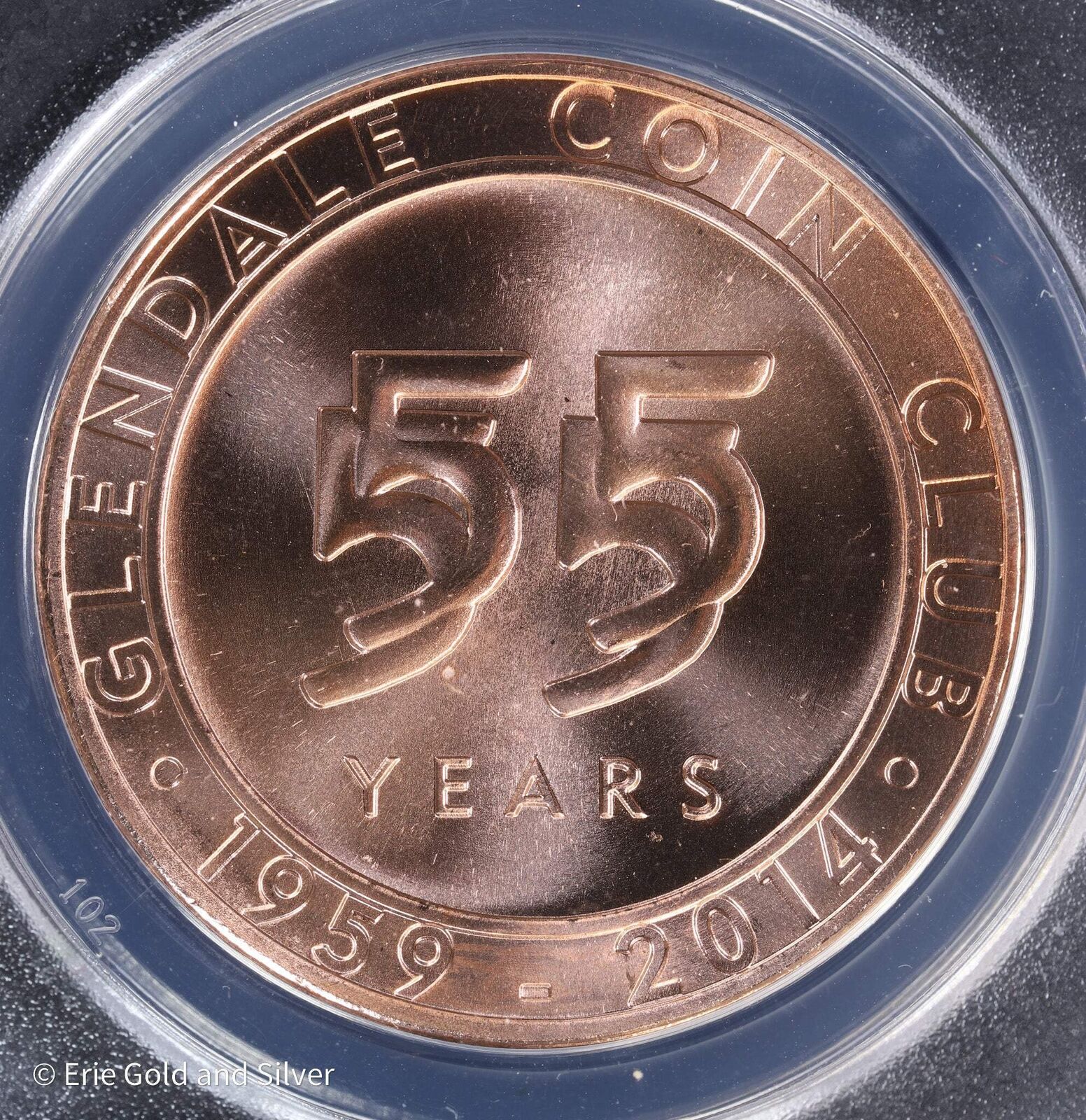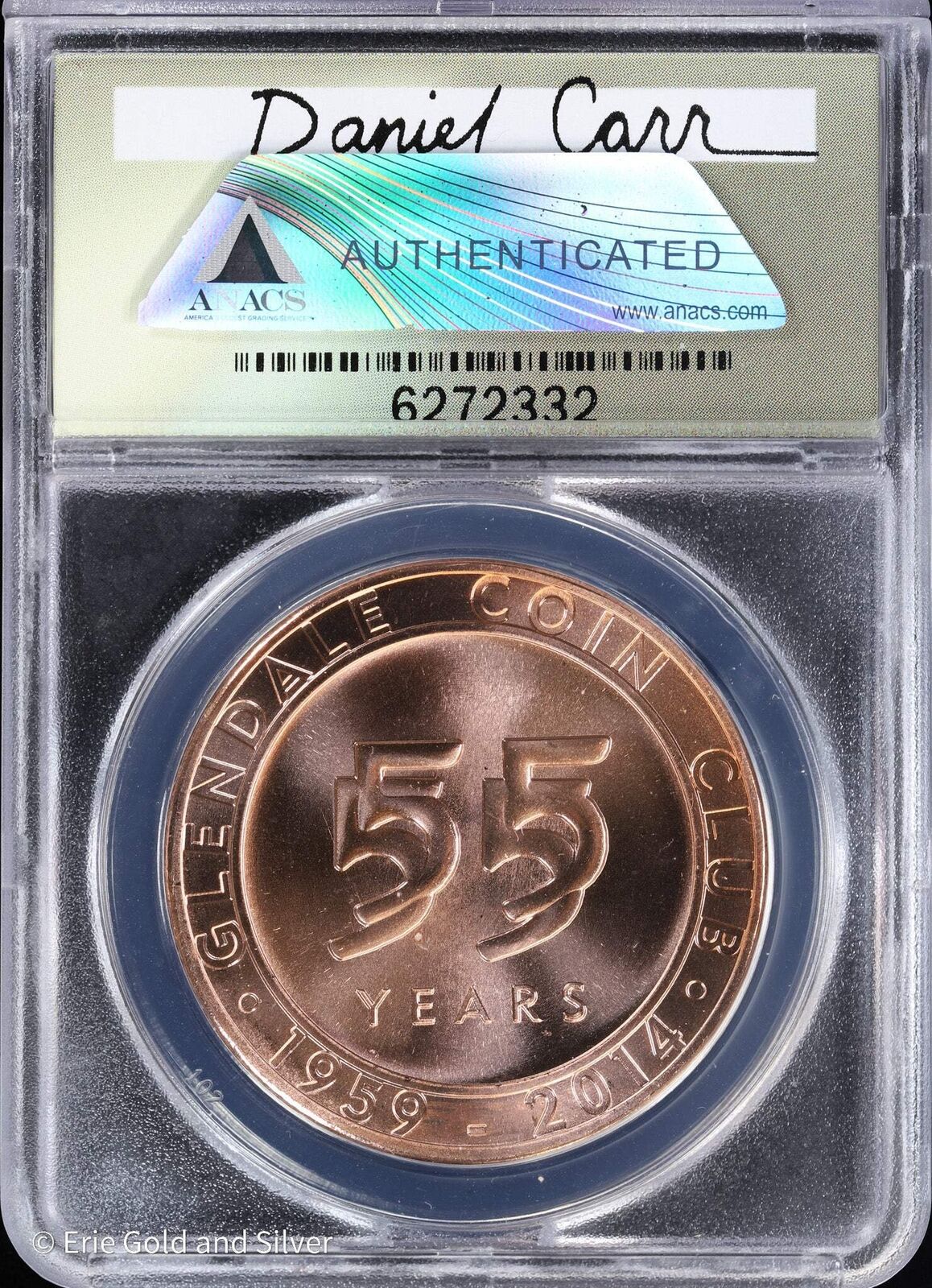 2014 Dan Carr Glendale Coin Club 55th Anniversary Copper Medal ANACS MS 69 Red