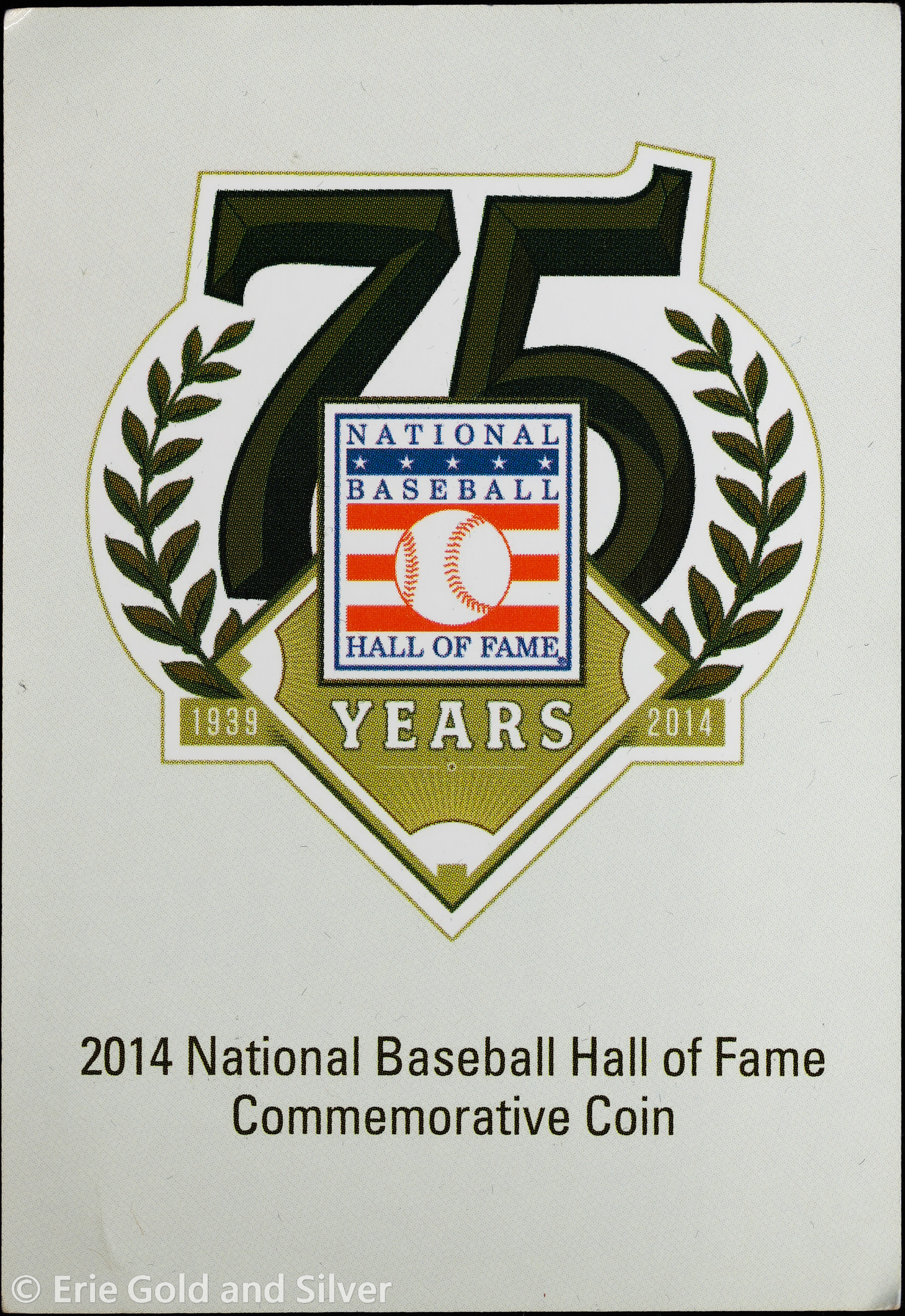 For sale is a 2014-P Baseball Hall of Fame Commemorative Silver Dollar with COA. Certified / graded by NGC at MS 70.