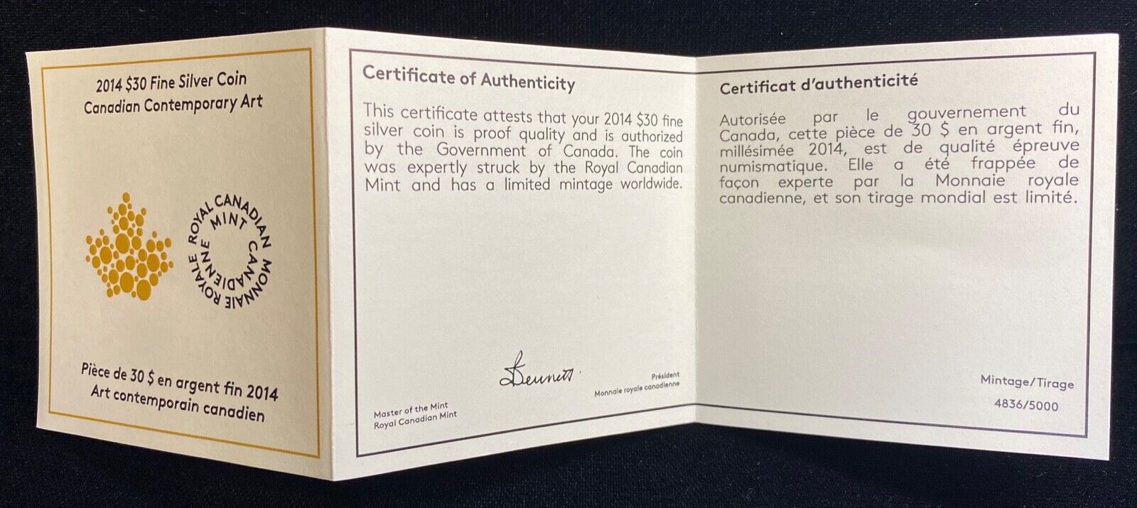 2014 Tim Barnard 2 oz Silver Canadian $30 Contemporary Art Coin