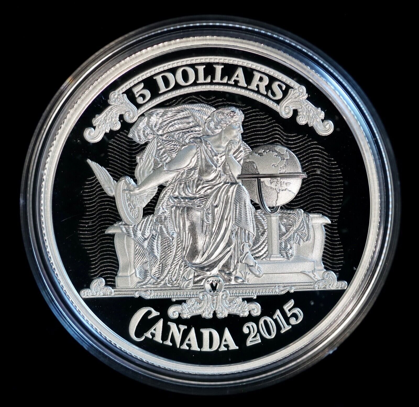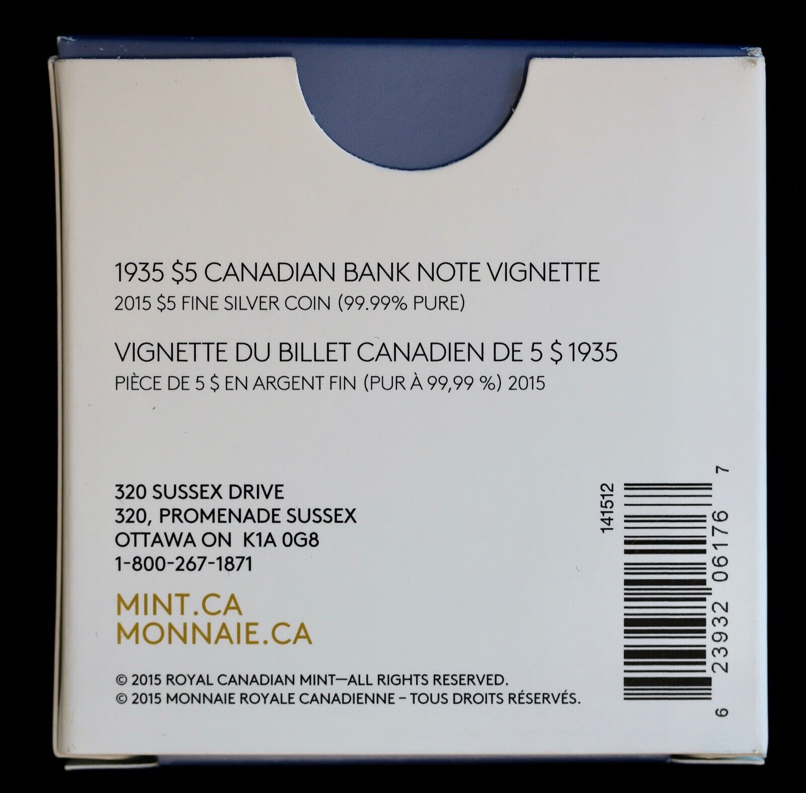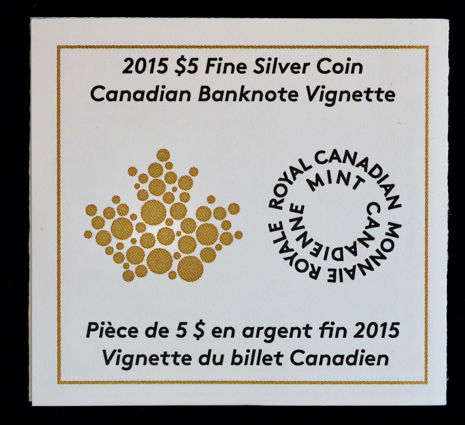 2015 $5 Proof Canadian Banknote Vignette Fine Silver Coin with Box and COA