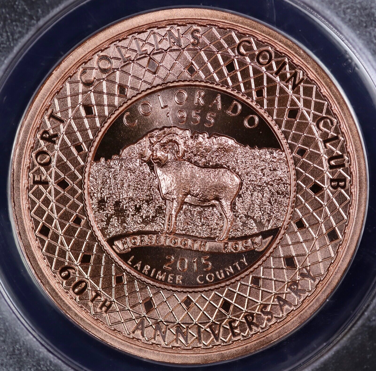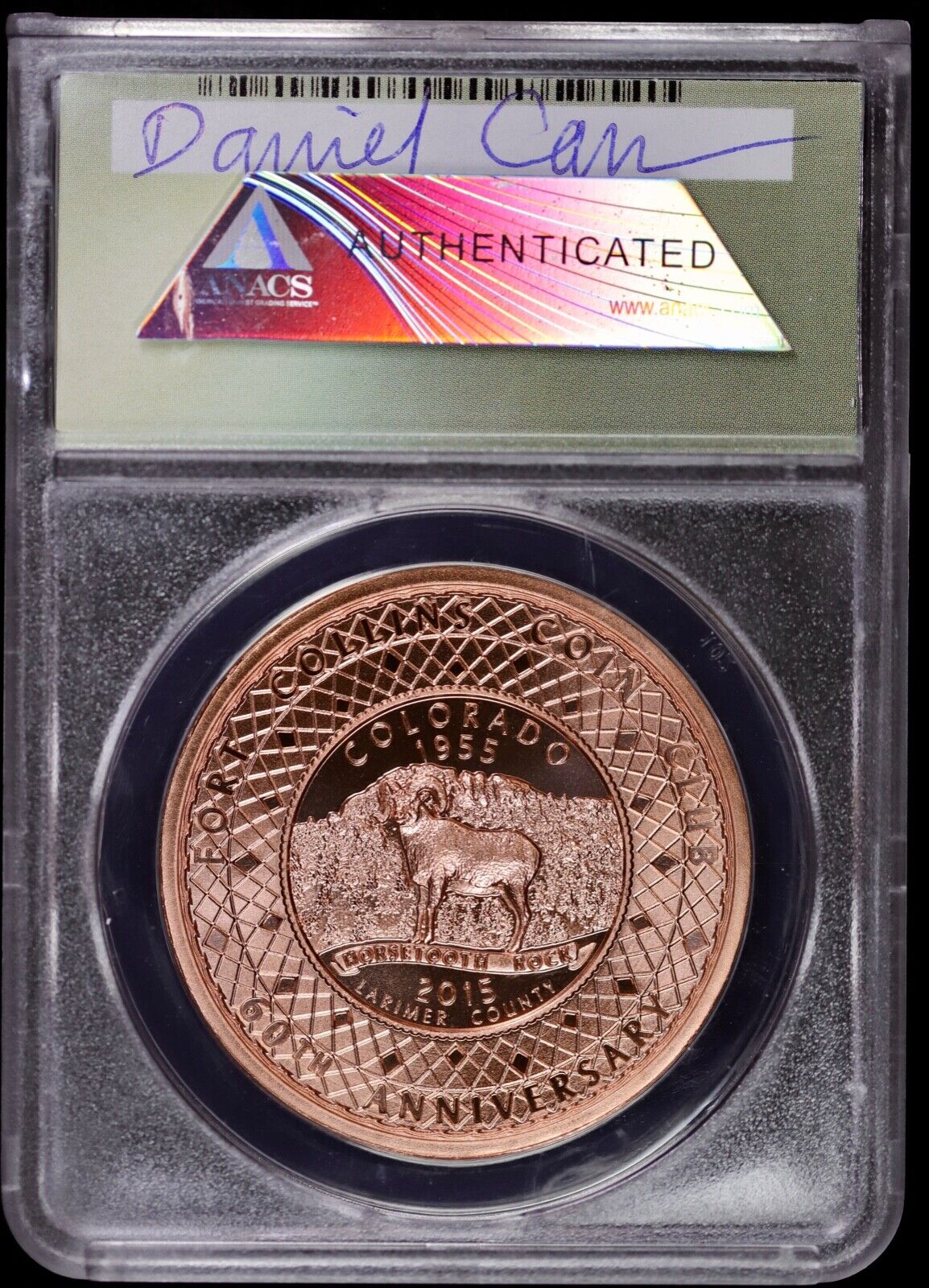 2015 Medal Dan Carr Moonlight Mint Ft. Collins Coin Club Copper ANACS MS69 DCAM
