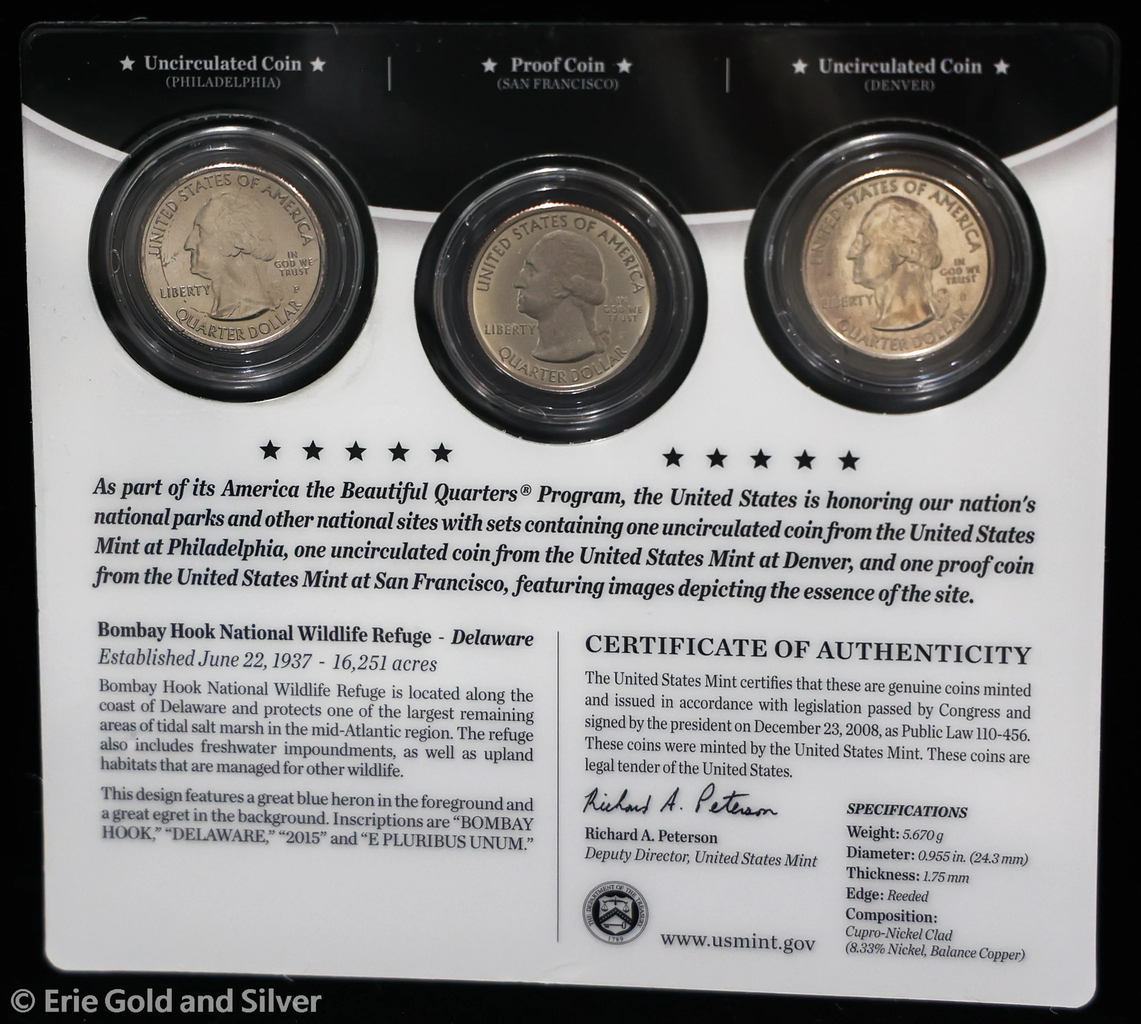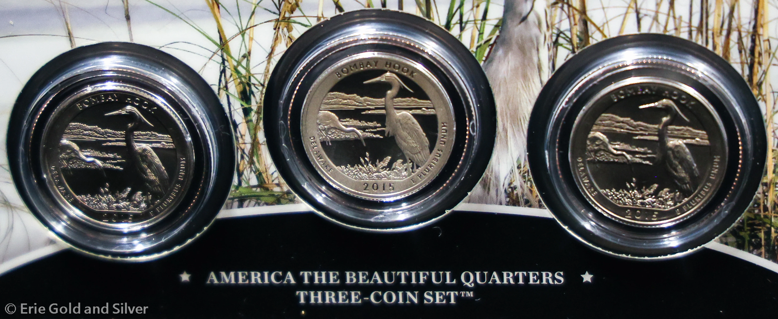 2015 P D S 25c ATB Bombay Hook Quarters 3 Coin Set | BU Proof