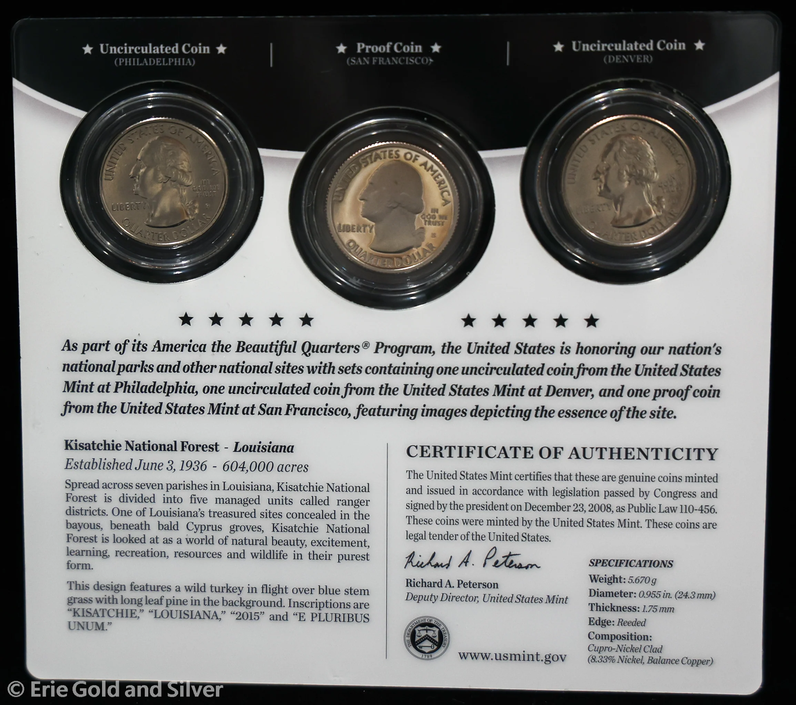 2015 P D S 25c ATB Kisatchie Nat'l Forest Quarters 3 Coin Set | BU Proof