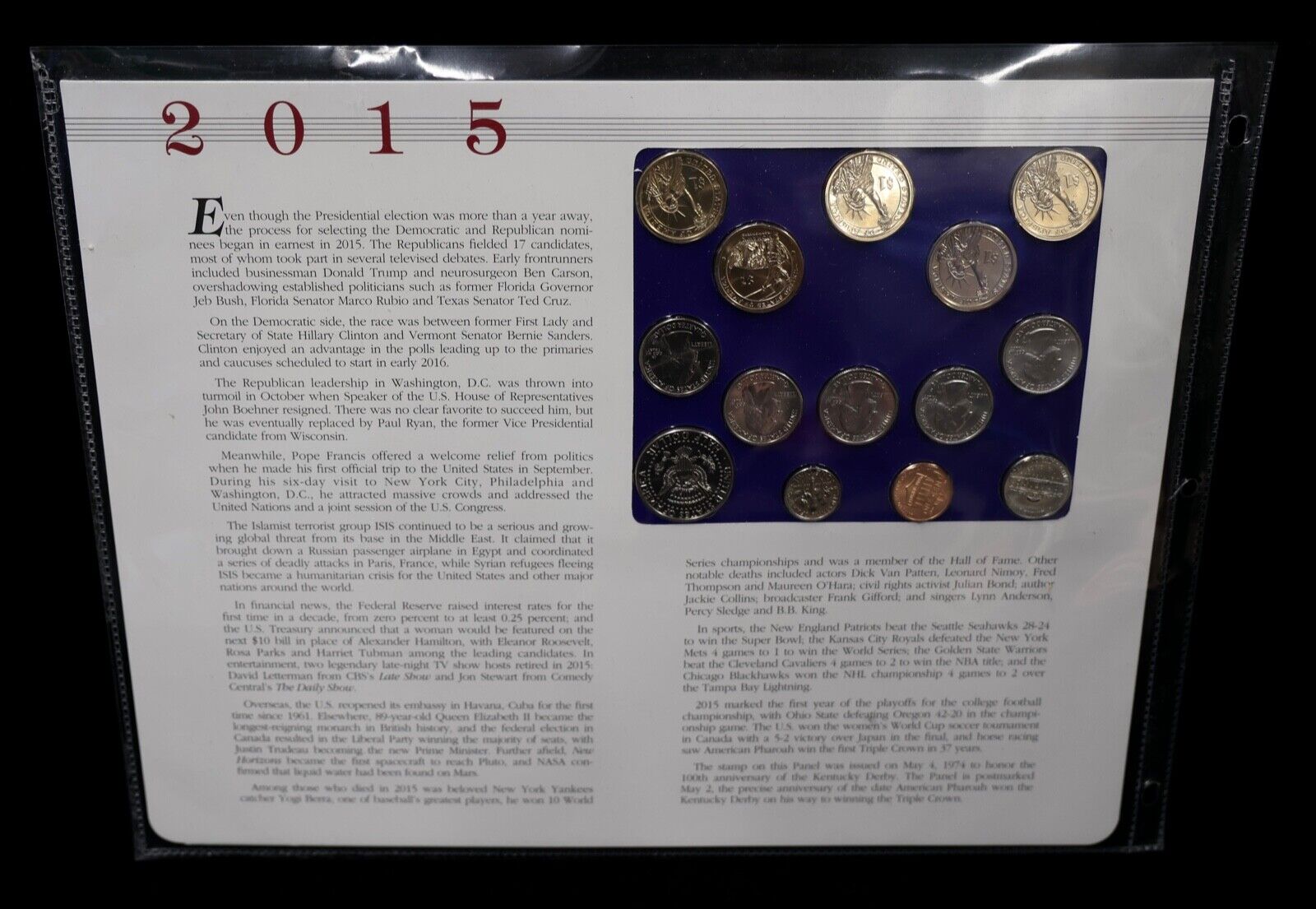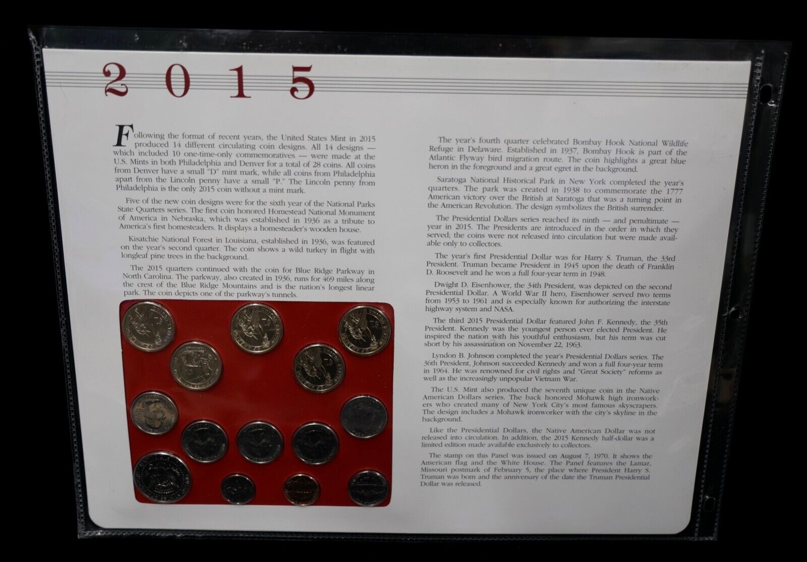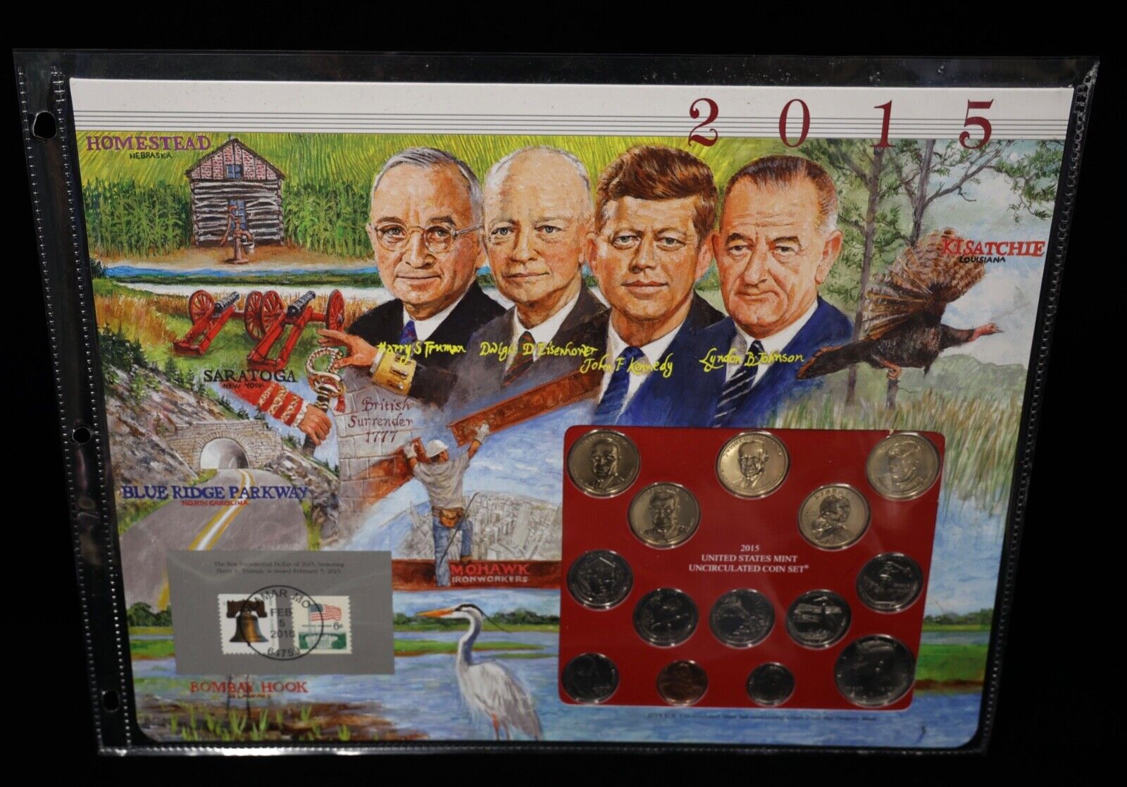 2015 P & D Uncirculated Mint Set Postal Commemorative Society Coins & Stamps