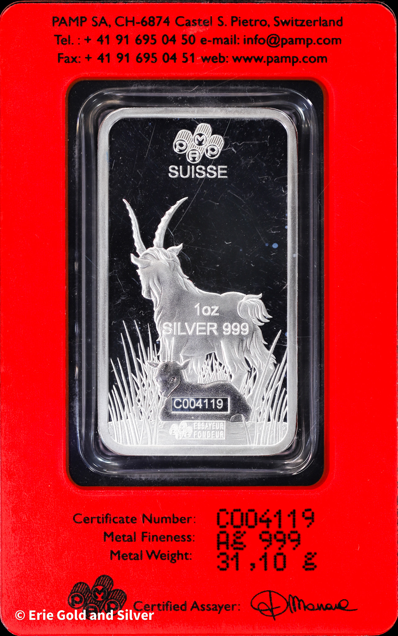 2015 PAMP Lunar Calendar Goat 1 oz Silver Bar in Assay
