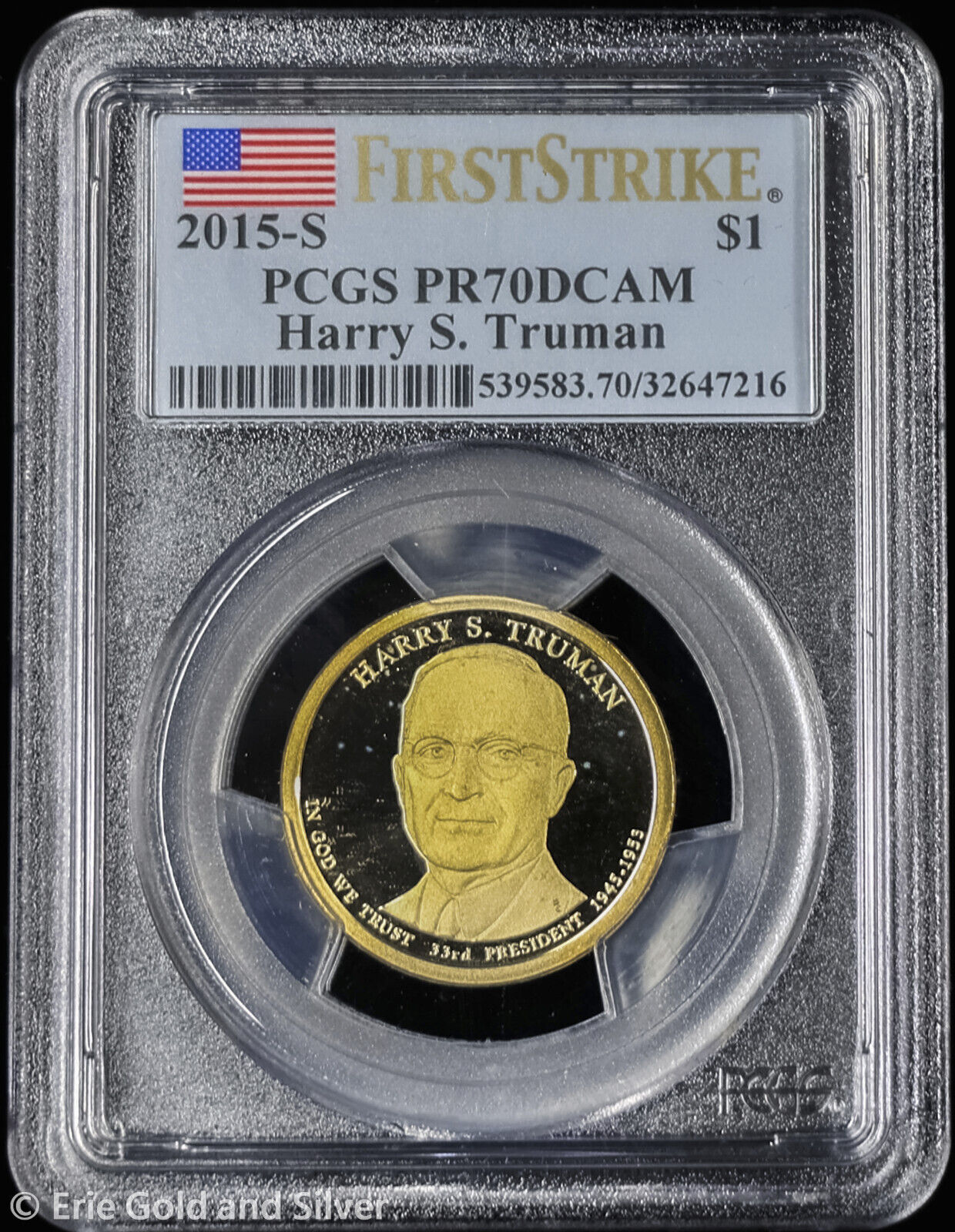 For sale is a 2015-S First Strike Proof Presidential Dollar Coins Set. Certified/Graded by COMPANY at GRADE. View pictures for details and condition. The set pictured is the exact set you will receive. Feel free to contact us with any questions.