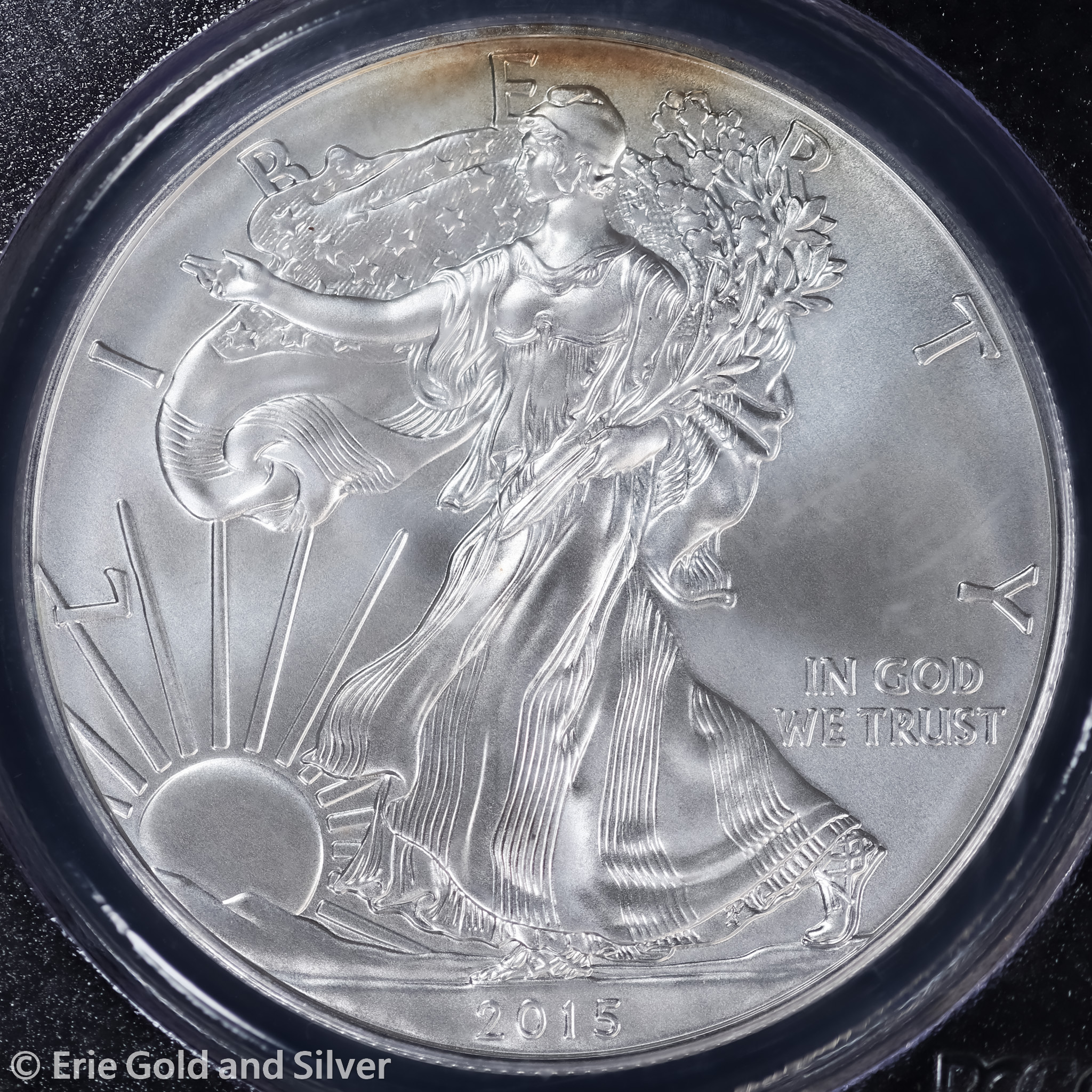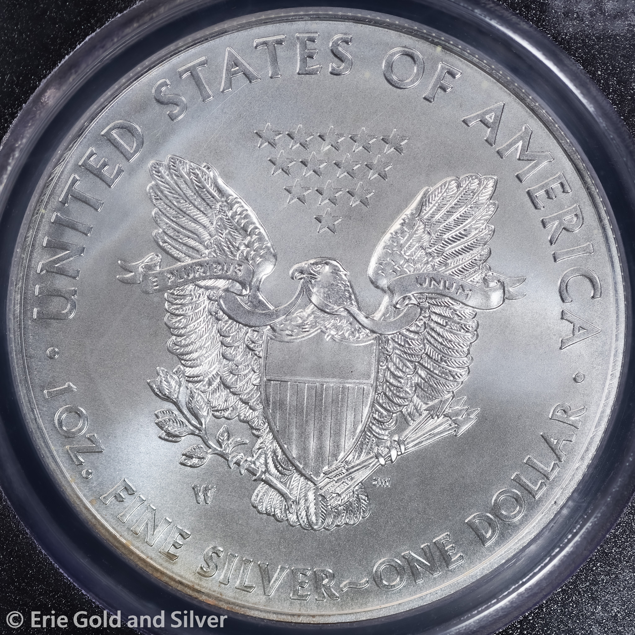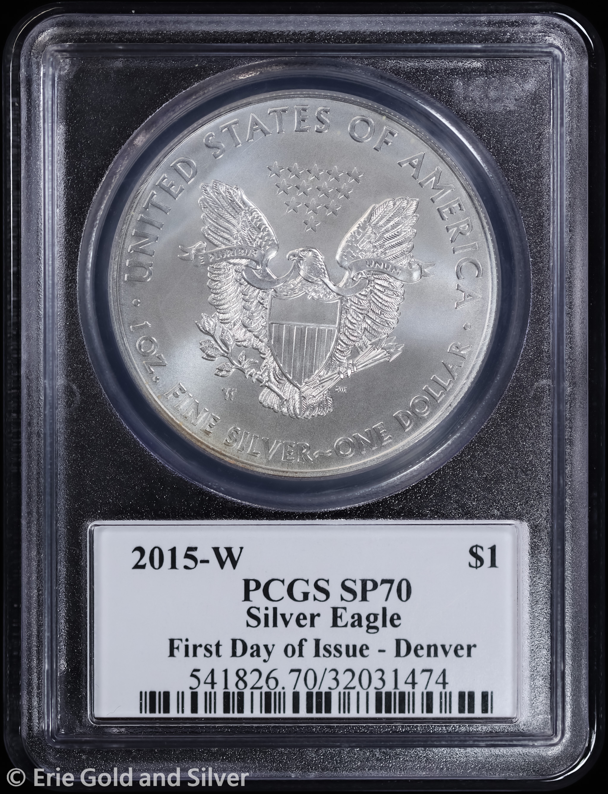 2015-W Burnished American Silver Eagle PCGS SP 70 | First Day of Issue - Denver, Mercanti Signed Slab