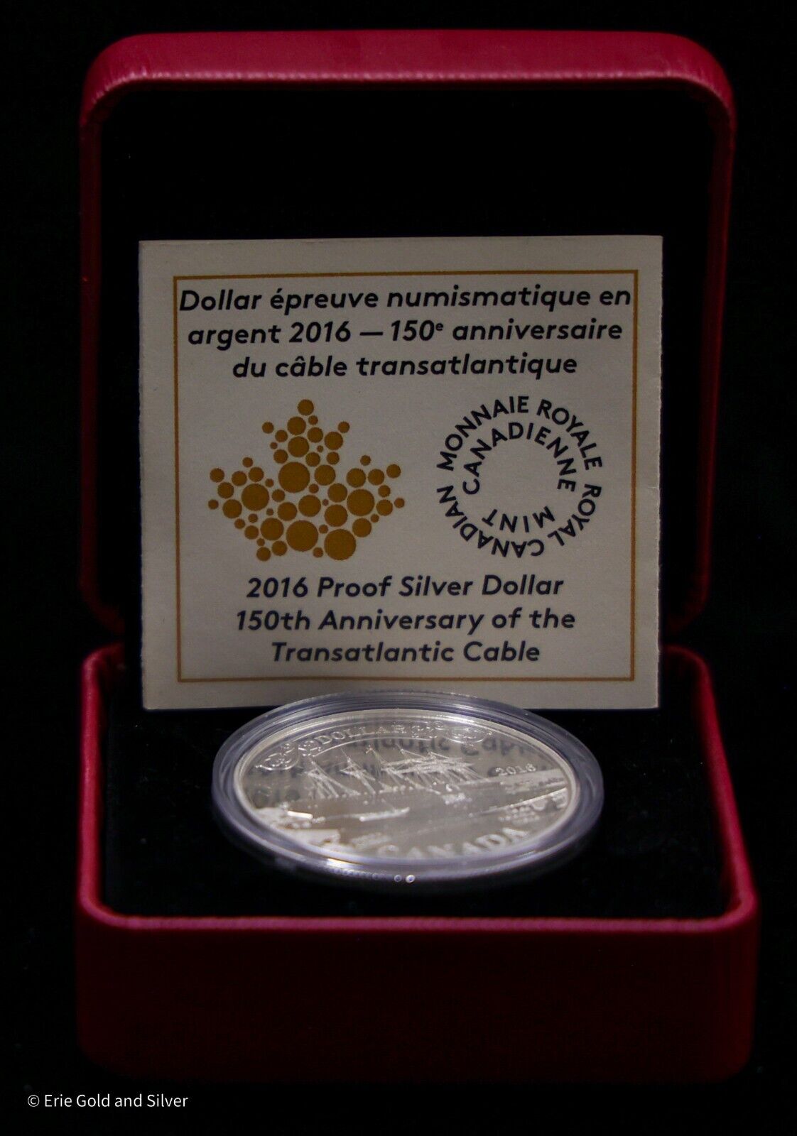 2016 $1 Canada Proof Silver Dollar 150th Anniversary Transatlantic Cable Box & COA