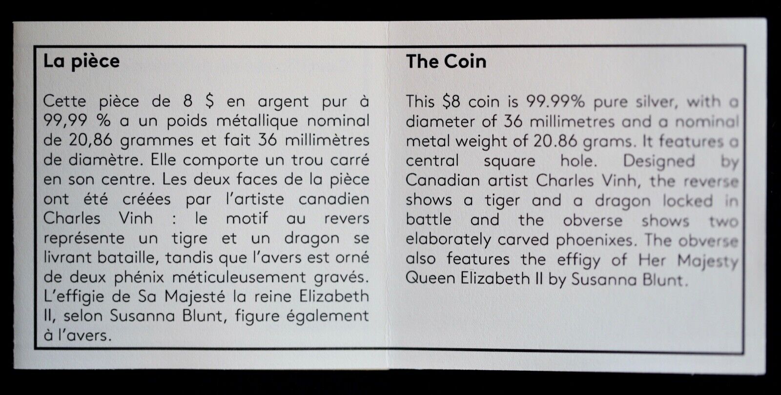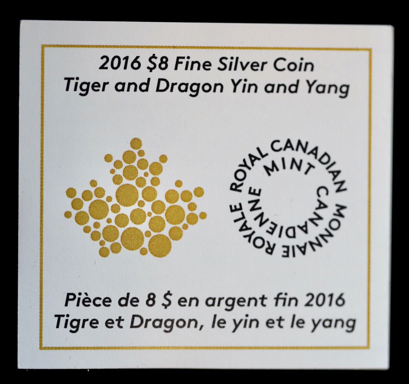 2016 $8 Fine Silver Coin Tiger and Dragon Yin and Yang with COA