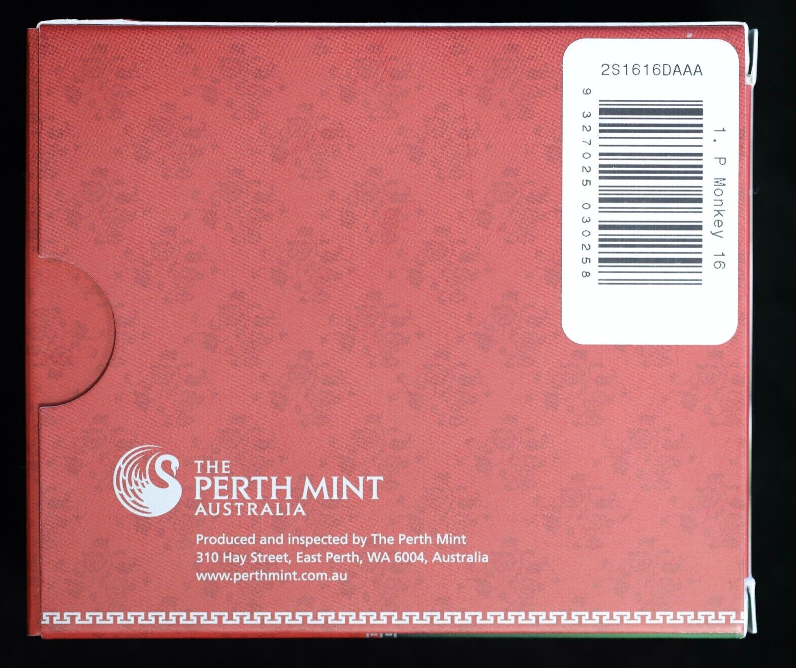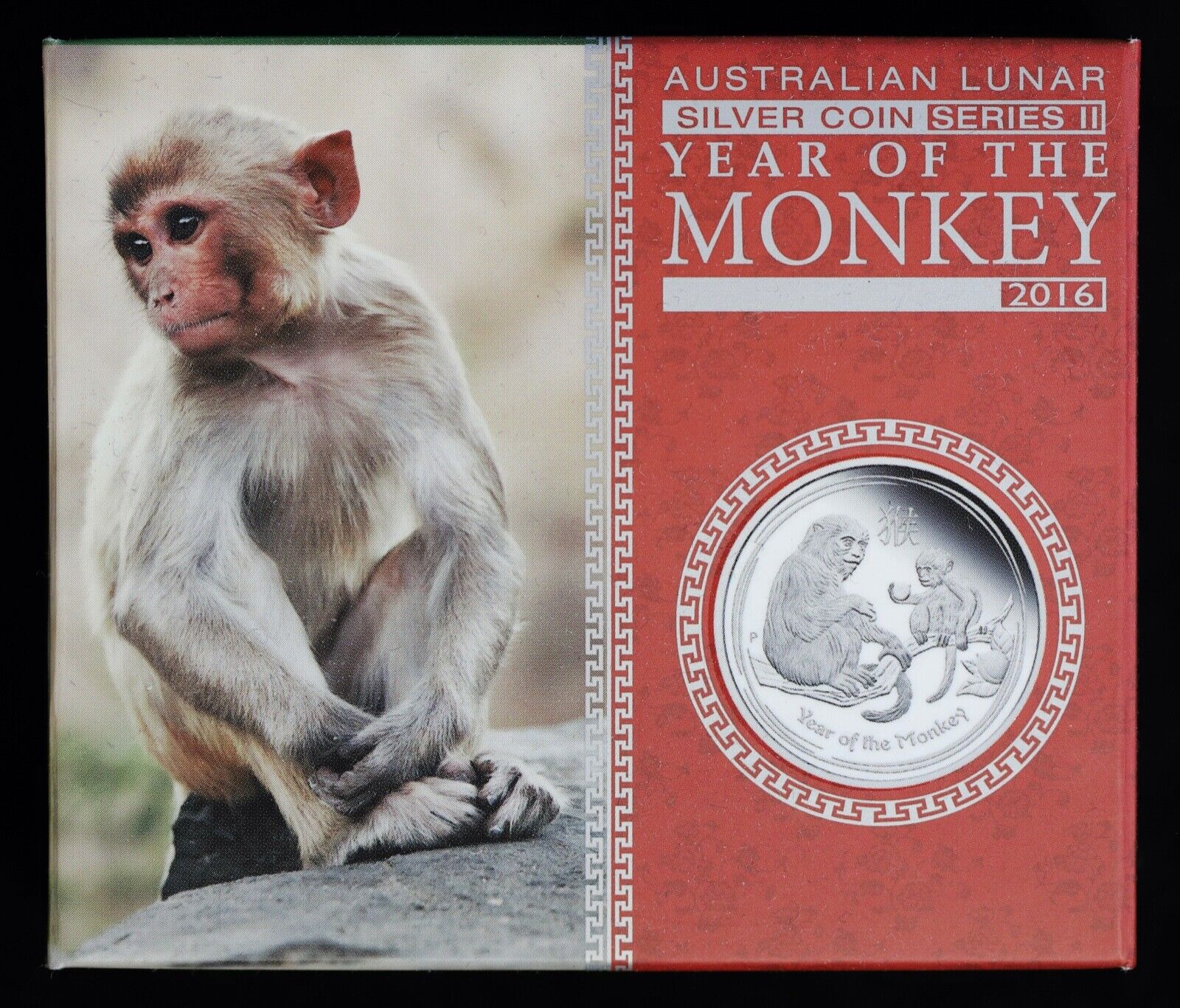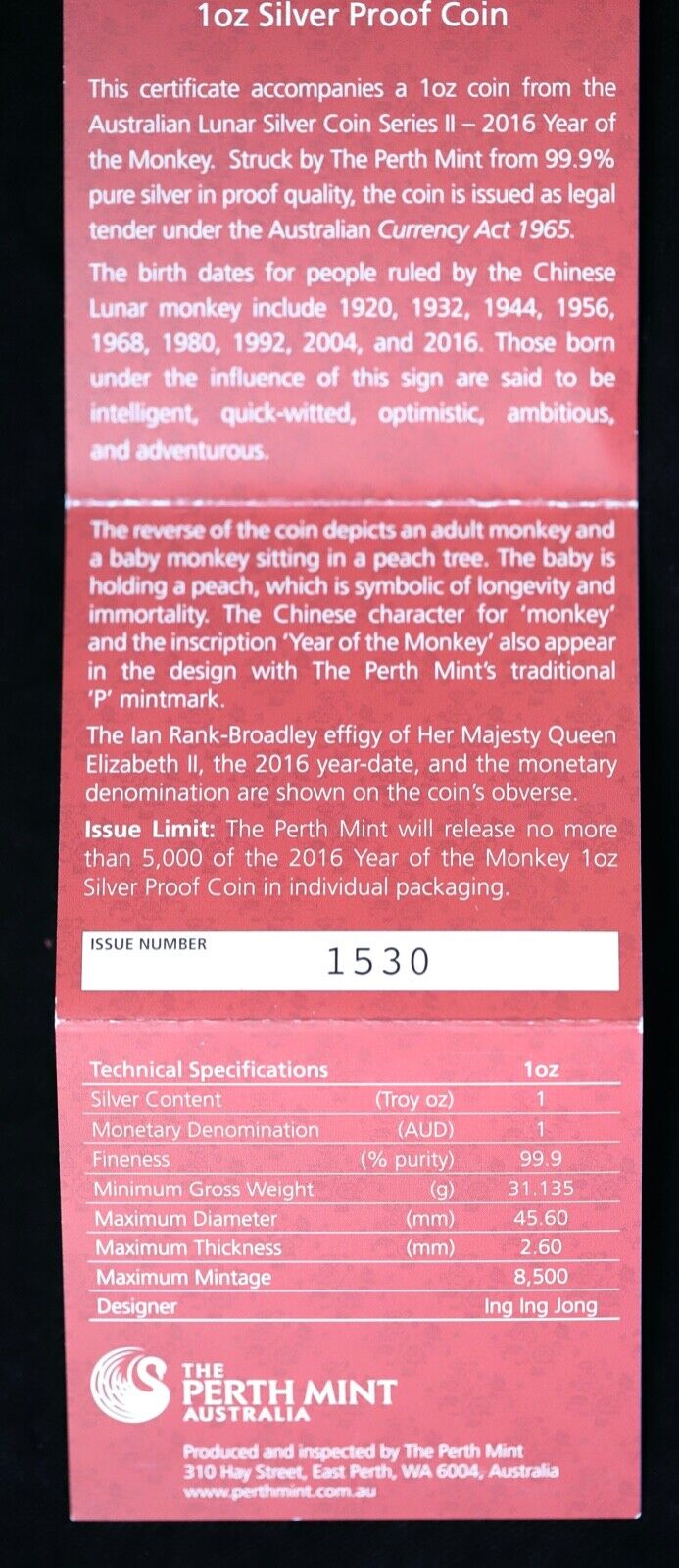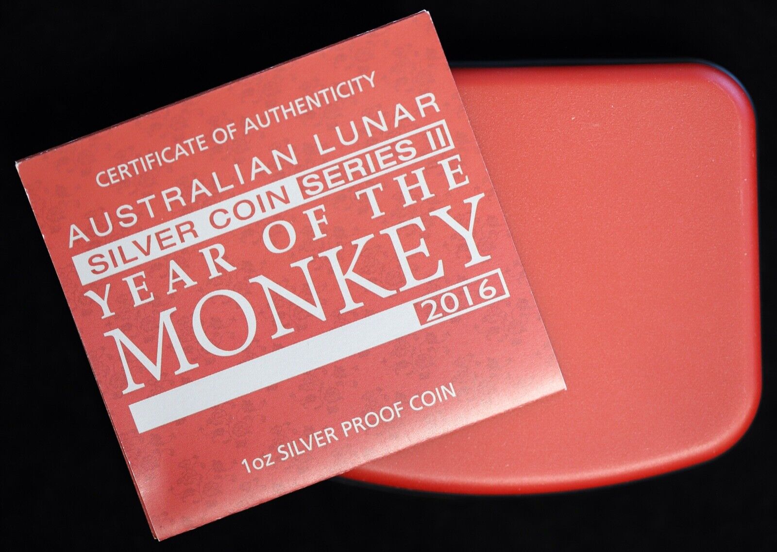 2016 Australian Lunar Year of the Monkey 1 oz .999 Fine Silver Proof w/ Box &COA
